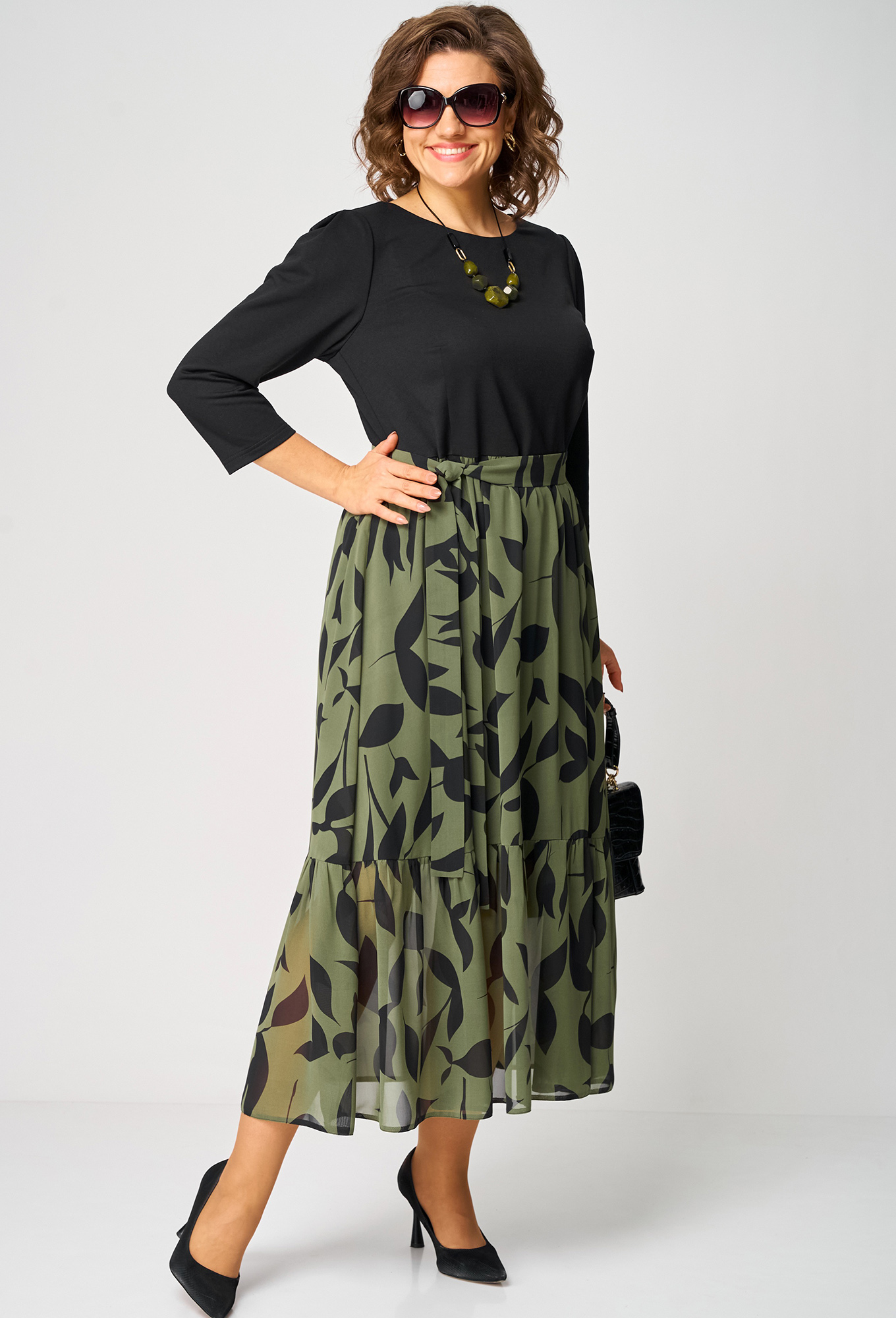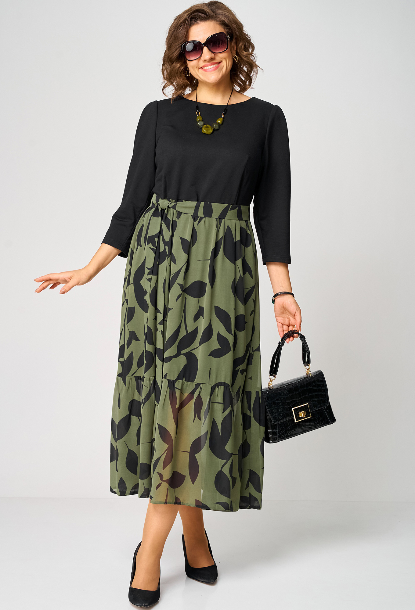 Платье EVA GRANT 7216С черный хаки