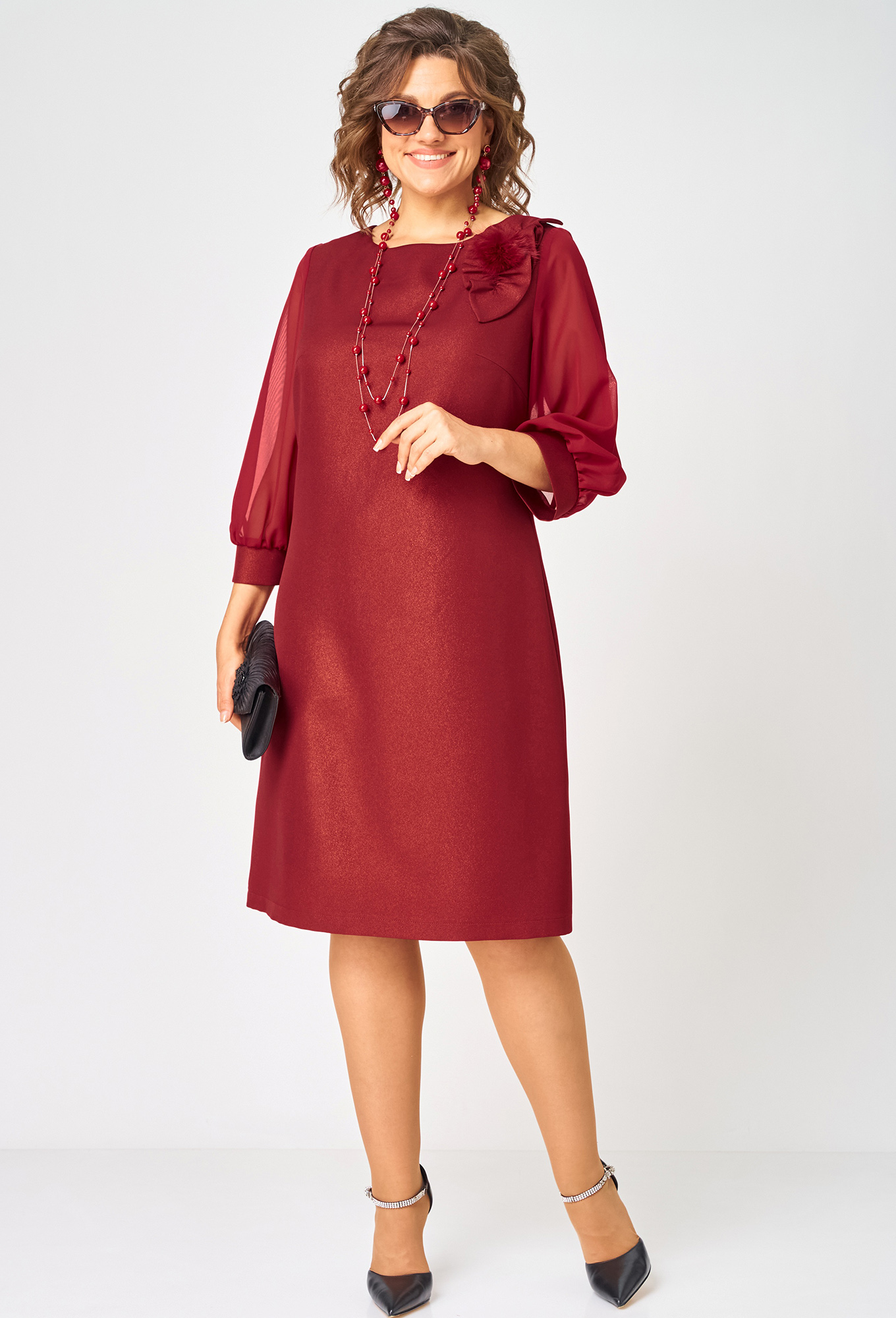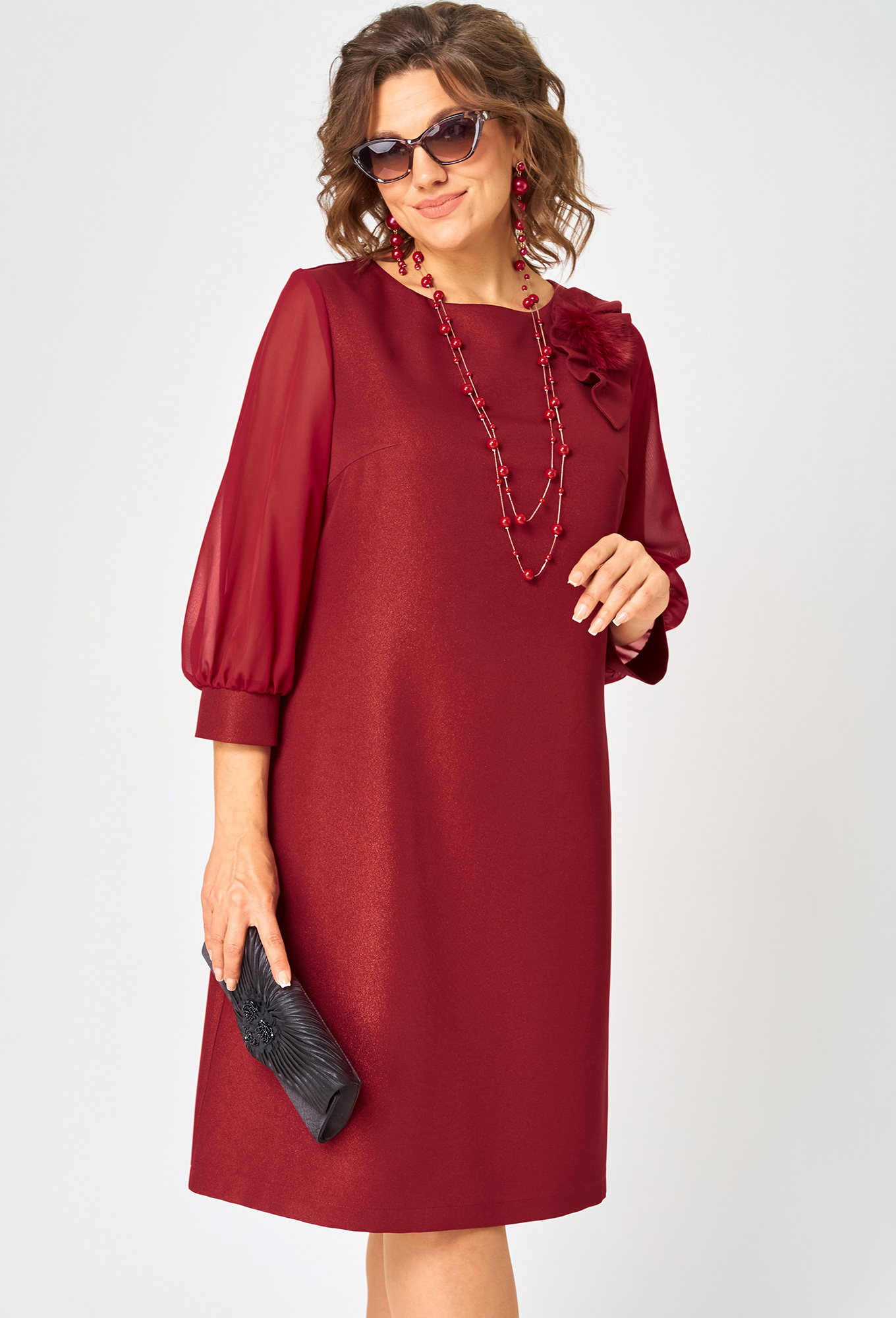 Модель: ЕВА ГРАНТ 7310D бордо Рос..показатьт: 170 см (девушка на фото ростом 170см) Сезон: Круглогодичный Тип ткани: Полиэстер 74%, Вискоза 21%, Спандекс 5%Платье женское полуприлегающего силуэта выполнено из плательной ткани с мерцающим пропитанным блеском (не сыпется) в сочетании с шифоном. Вырез горловины круглый на обтачке, по полочке нагрудные втачки, рукав втачной из шифона 7/8 по низу на сборке и притачной манжете. По спинке потайная тесьма - молния и вытачки.Декором платья служит декоративный пришивной элемент со съемной брошью.т: 170 см (девушка на фото ростом 170см)