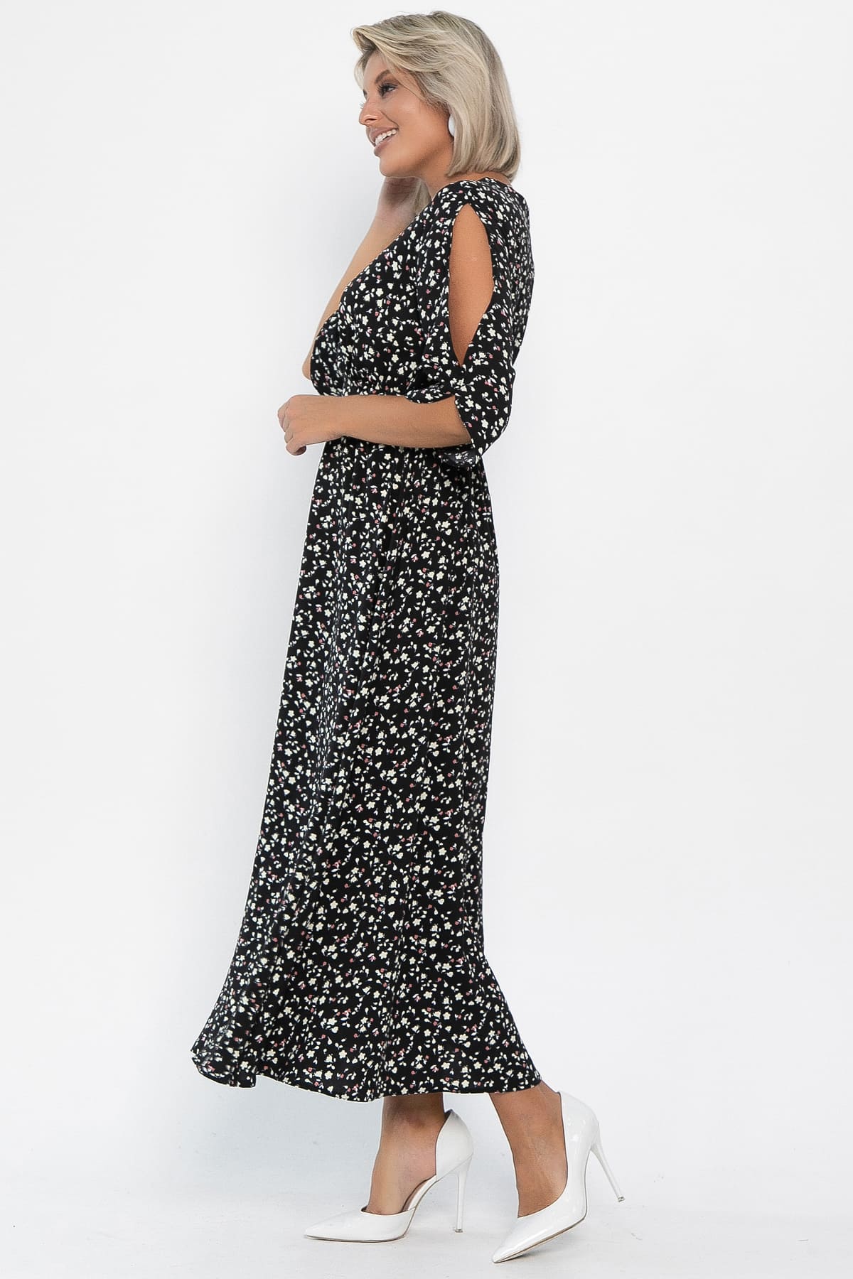 Платье с цветочным принтом — покоряет своей нежностью и романтичностью, делая образ неповторимым и запоминающимся! Платье имеет отрезную талию, а в поясе предусмотрена резинка. Лиф платья выполнен на запах, а рукава состоят из двух частей. Юбка имеет форму полусолнца. С этим платьем вы точно будете в центре внимания!