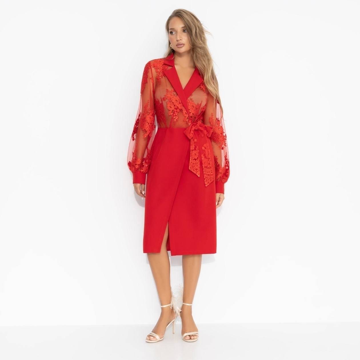 Выходите на охоту за мужем? У ЧАРУТТИ есть оружие, с которым шансы на неудачу сводятся к нулю. Платье ЧАРУТТИ с кружевными вставками оставляет пространство для самого пылкого воображения. Но не оставляет шанса вас не заметить. В таком наряде вы – не просто женщина, вы – трофей, достойный лишь самого состоятельного претендента. Платье в длине миди с лацканами на запах. Верх изделия просвечивает, рекомендуем пододевать бесшовное белье или топ телесного цвета.