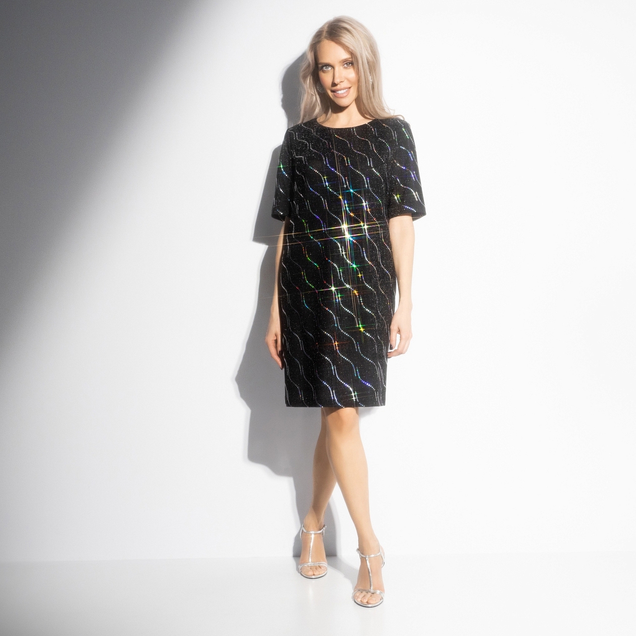 Говорят, нити судьбы могут сплестись в самые красивые узоры, если позволить себе поверить в лучшее. В этом платье ЧАРУТТИ каждая блестящая линия ‒ знак того, что всё сложится так, как нужно тебе. Просто сделай шаг навстречу мечте, ведь Вселенная уже всё устроила! Платье свободного кроя с карманами и акцентным нарядным декором. Сияющий блеск на глубоком чёрном фоне. А ты готова впустить чудо в свои дни?