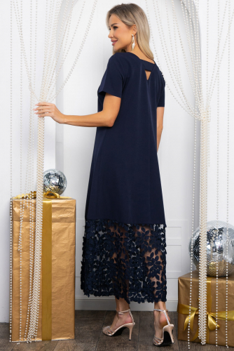 Элегантная модель платья прямого силуэта. Длина миди, спинка оформлена высоким разрезом. Модель имеет красивый летящий рукав с воланом из сетки плиссе. Также талию можно подчеркнуть  поясом, который входит в комплект.