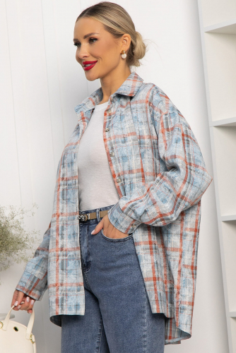 Рубашка свободного кроя в терракотовом цвете — это сочетание современного стиля и практичности. Воротник-стойка придаёт ей элегантность, а манжеты на рукавах обеспечивают удобство. Пуговицы в тон ткани создают аккуратный и гармоничный образ. Особенность этой модели — дополнительные пуговицы на талии спереди и боковые петельки, которые позволяют подчеркнуть силуэт. Их можно застёгивать по мере необходимости. Это идеальный выбор для тех, кто хочет выглядеть стильно и чувствовать себя комфортно в повседневной одежде. У данной расцветки ткань с эффектом жатки.