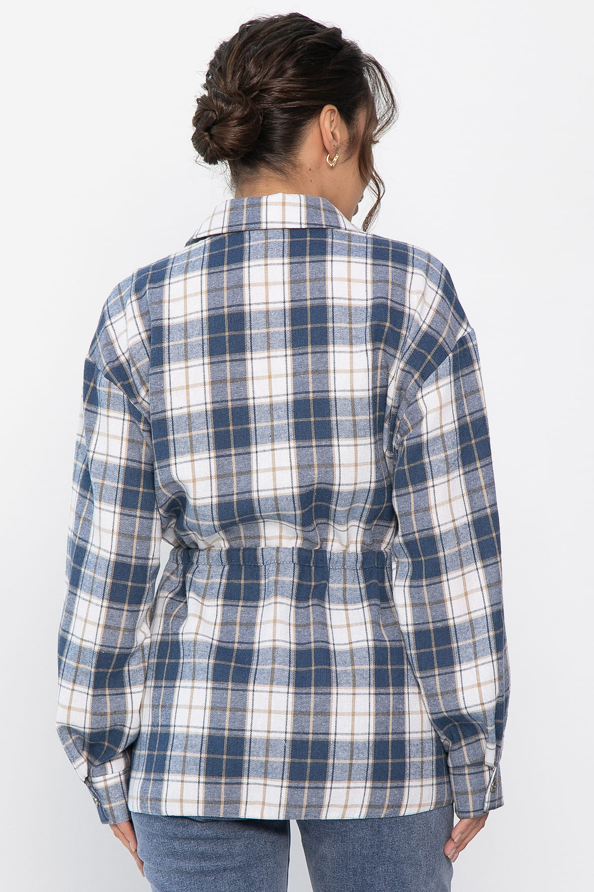 Рубашка в клетку в сине-белом цвете станет стильным акцентом в вашем гардеробе, позволяя экспериментировать с разными образами. Её можно носить как самостоятельный элемент или использовать в многослойных ансамблях. По бокам есть разрезы. Рубашка с воротником-стойкой и аккуратной застежкой на пуговицы выглядит современно и элегантно. Спущенное плечо добавляет расслабленности, а кулиска на талии подчеркивает фигуру. Создайте свой уникальный стиль с нашей новой клетчатой рубашкой!
