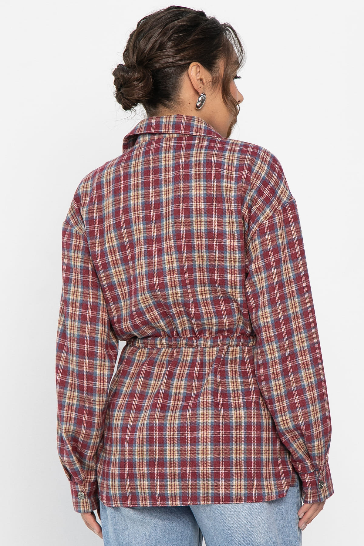 Рубашка в клетку в винном цвете станет стильным акцентом в вашем гардеробе, позволяя экспериментировать с разными образами. Её можно носить как самостоятельный элемент или использовать в многослойных ансамблях. По бокам есть разрезы. Рубашка с воротником-стойкой и аккуратной застежкой на пуговицы выглядит современно и элегантно. Спущенное плечо добавляет расслабленности, а кулиска на талии подчеркивает фигуру. Создайте свой уникальный стиль с нашей новой клетчатой рубашкой!