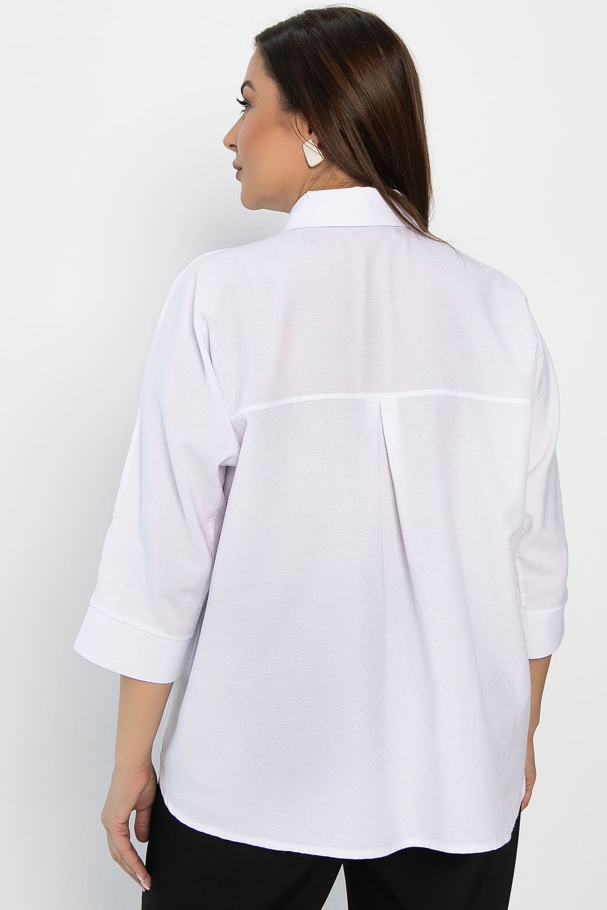 Белая женская рубашка — это универсальный и элегантный элемент гардероба, который прекрасно подходит как для создания строгого офисного или делового стиля, так и для повседневных образов. Воротник рубашечного типа, переходящий в застёжку на пуговицах. Рукава цельнокроеные, заканчиваются манжетами. По задней части кокетка со встречной складкой. По переду встречная складка. Низ изделия имеет округлую форму, а переднее полотнище короче заднего. Эта рубашка отлично сочетается с юбками, брюками и джинсами. Выбирая её, вы получаете множество возможностей для создания неповторимых образов.