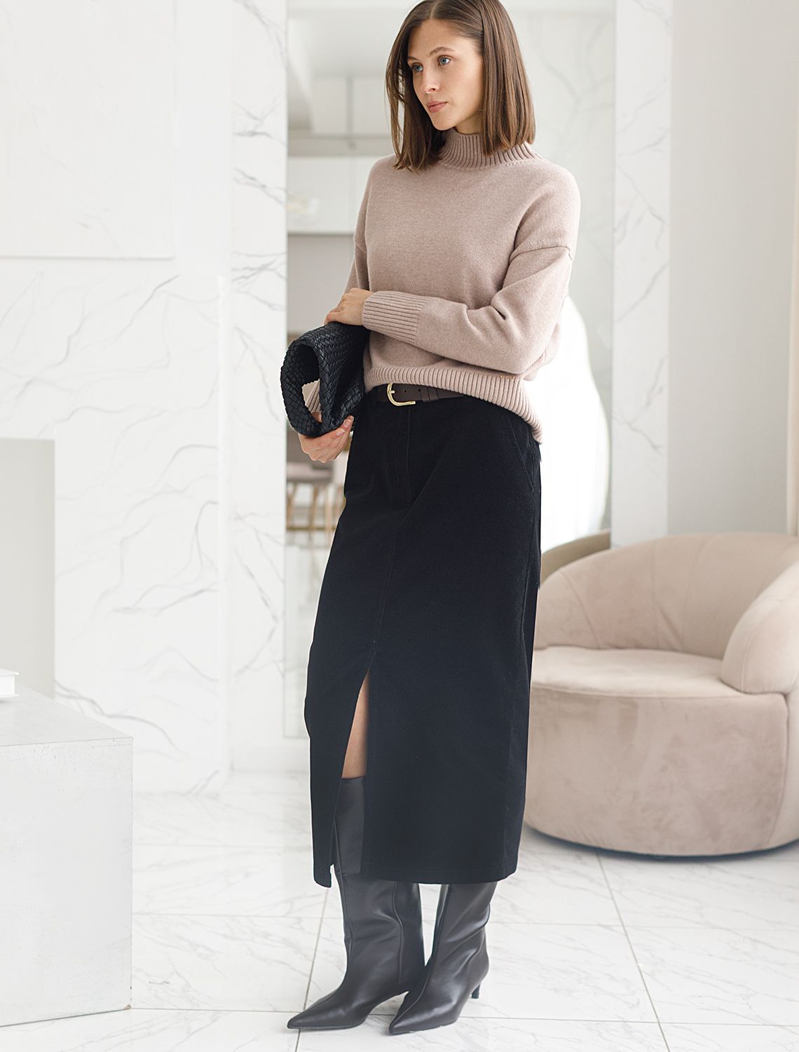 Состав: 98%Хлопок 2%ПУ Плотность:..показать 310 Г/м2 Размер товара на первом фото: 42Юбка прямого кроя с выполнена из мягкого хлопкового микро-вельвета с добавлением эластана. Модель дополнена высоким разрезом спереди. Изделие комфортно садится по фигуре и не сковывает движения. Хорошо комбинируется с вязаным трикотажем, блузками и денимом. Также прекрасно станет альтернативой деловым низам в нестрогом офисном дресс-коде. 310 Г/м2