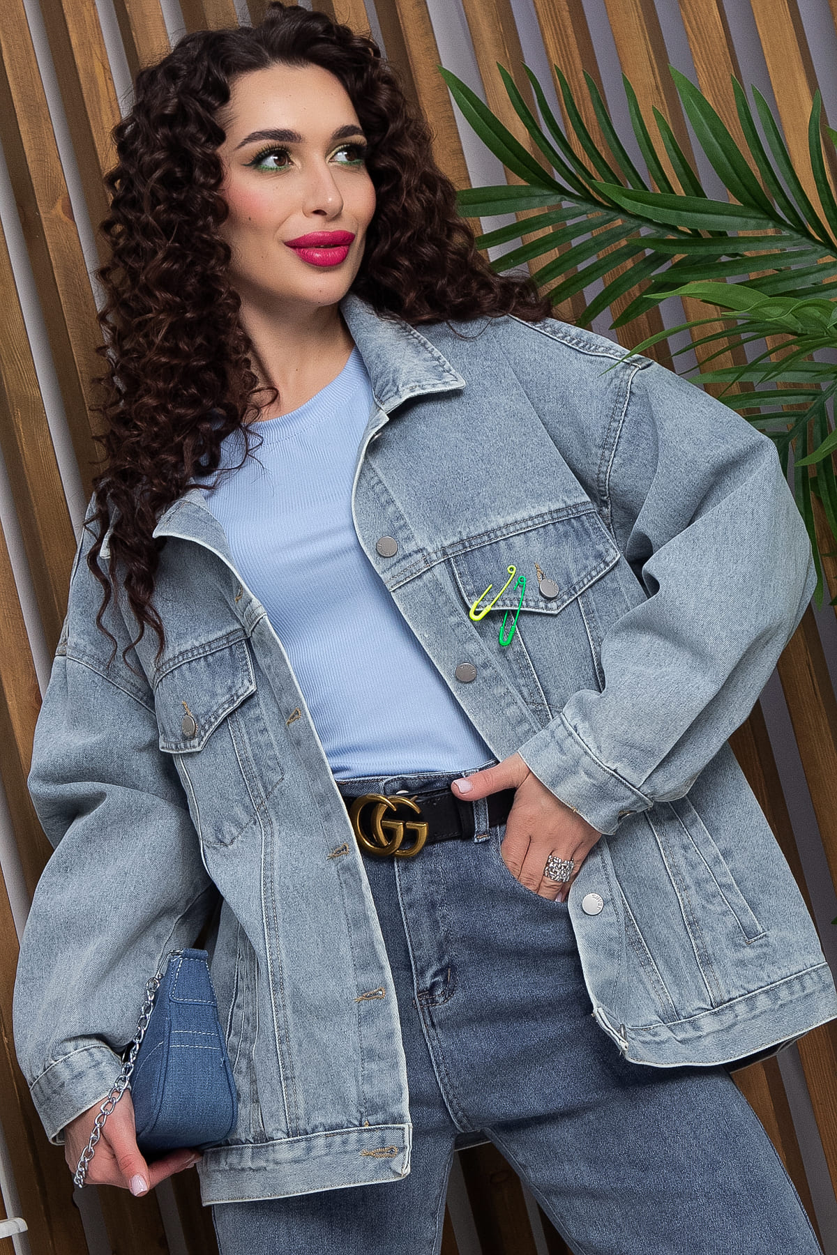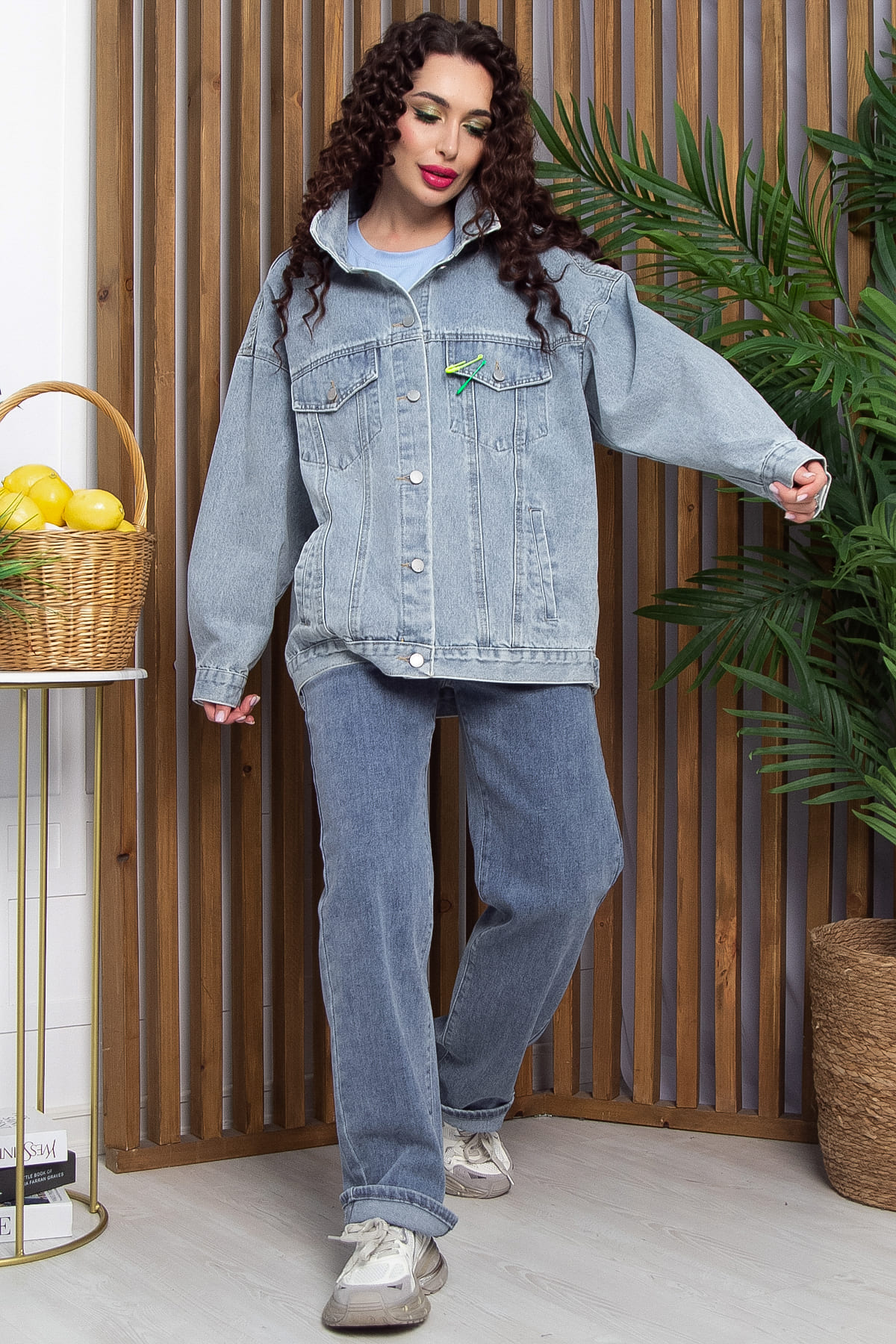 Джинсовый жакет в серо-голубом оттенке станет вашей любимой базовой вещью в гардеробе! Классический стиль жакета включает отрезную кокетку по спинке и переду, а также карманы-обманки на переднем полотнище и действующие карманы ниже. Декоративные булавки добавляют изюминку. Спущенное плечо и длинные рукава на манжете с пуговицей обеспечивают комфорт. Воротник рубашечного типа плавно переходит в планку на пуговицах. Этот жакет искусственно потерт и состарен, что придает ему особый шарм.