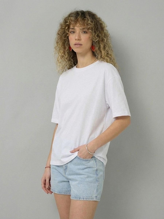 Женская футболка F5, Oversize fit (свободный силуэт), круглый вырез горловины, короткий цельнокроеный рукав. Выполнена из классического трикотажного полотна.