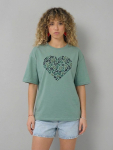 Женская футболка F5, Oversize fit (свободный силуэт), круглый вырез горловины, короткий цельнокроеный рукав. Выполнена из классического трикотажного полотна.