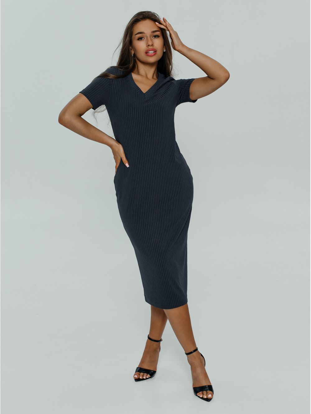 Платье  трикотажное лапша приталенное с V образным вырезом и коротким рукавом.