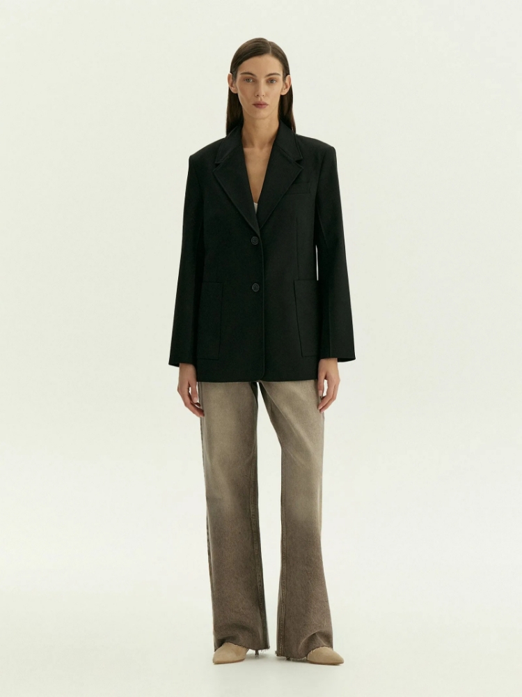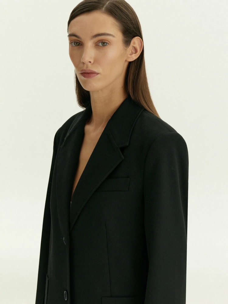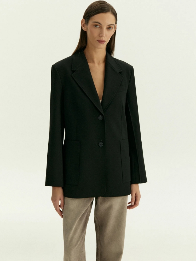 Полуприталенный удлинённый жакет станет стильным решением на каждый день. Однобортная модель имеет скруглённые борта и широкие лацканы. Крупные накладные карманы и рукав с отстрочкой придают вещи характер. Плотный материал жакета хорошо держит форму. Он на четверть состоит из шерсти и еще наполовину — из вискозы. Изделие выполнено на дышащей и комфортной подкладке с высоким содержанием вискозы. Завершить образ можно брюками D474/coal и другими базовыми моделями