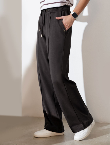 Прямые брюки из джерси на резинке сзади D44.155 серый меланж