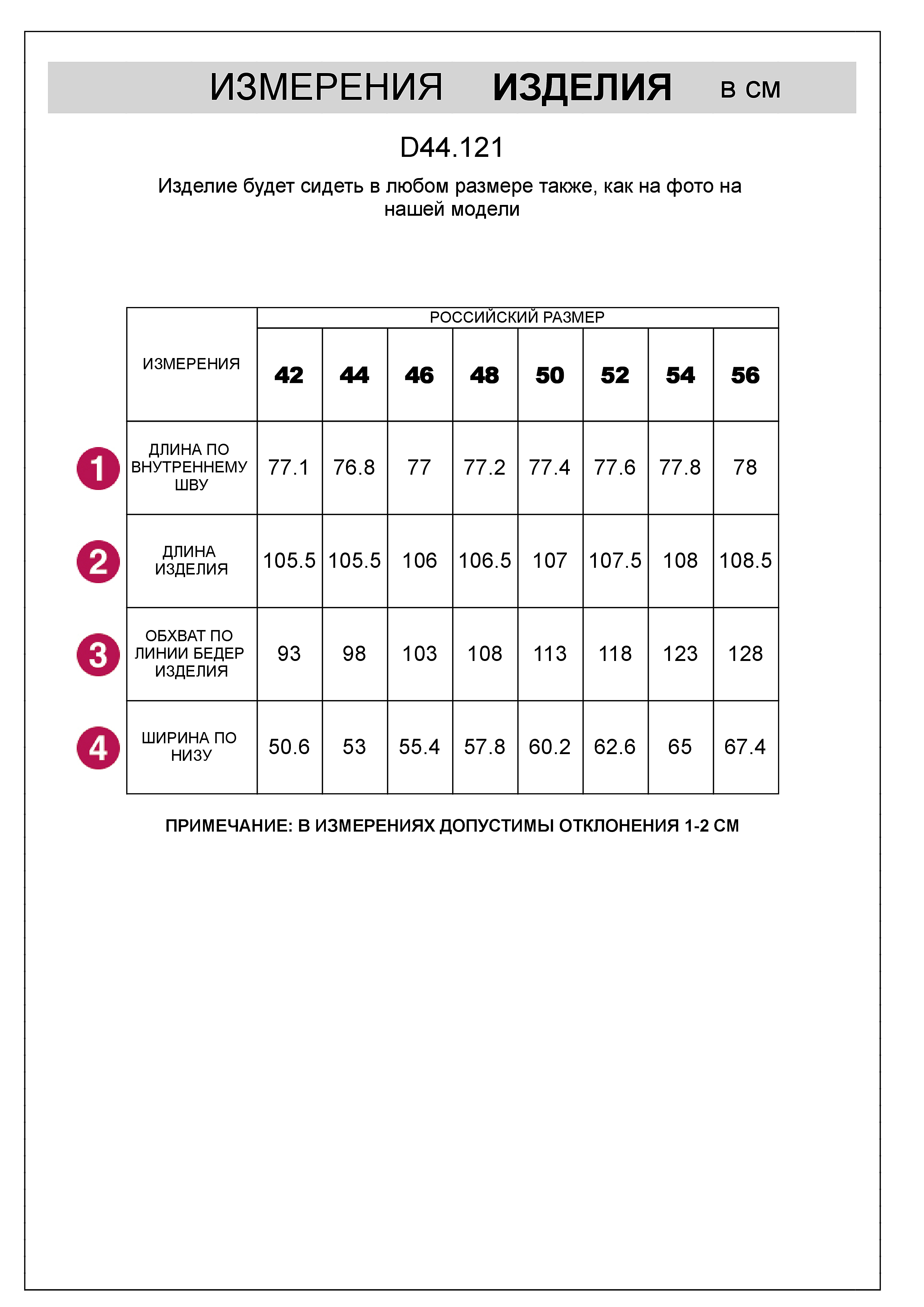 Брюки прямого кроя выполнены из фактурного трикотажа в рубчик. Благодаря мягкой хлопковой ткани в рубчик, брюки комфортно сидят по фигуре и не будет стеснять движения. Эластан в составе гарантирует формоустойчивость изделия. Сочетаются в костюме с топом D43.183, футболкой D49.005 и лонгсливом D49.012