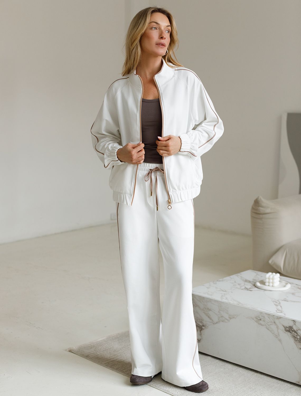 Прямые брюки с лампасами из эластичного футера двухнитки без начеса D44.164 белый