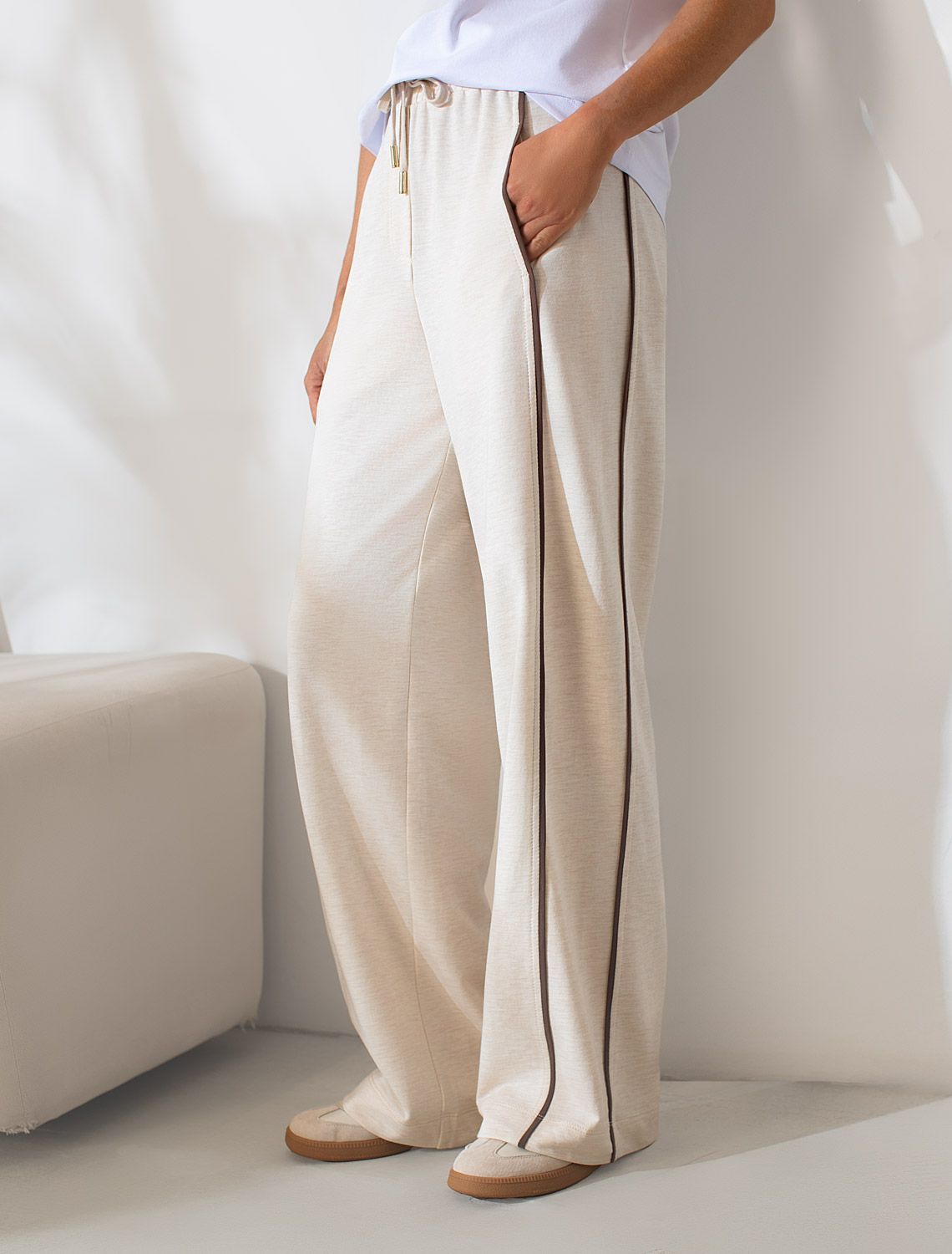 Прямые брюки с лампасами из эластичного футера двухнитки без начеса D44.164 овсяный меланж