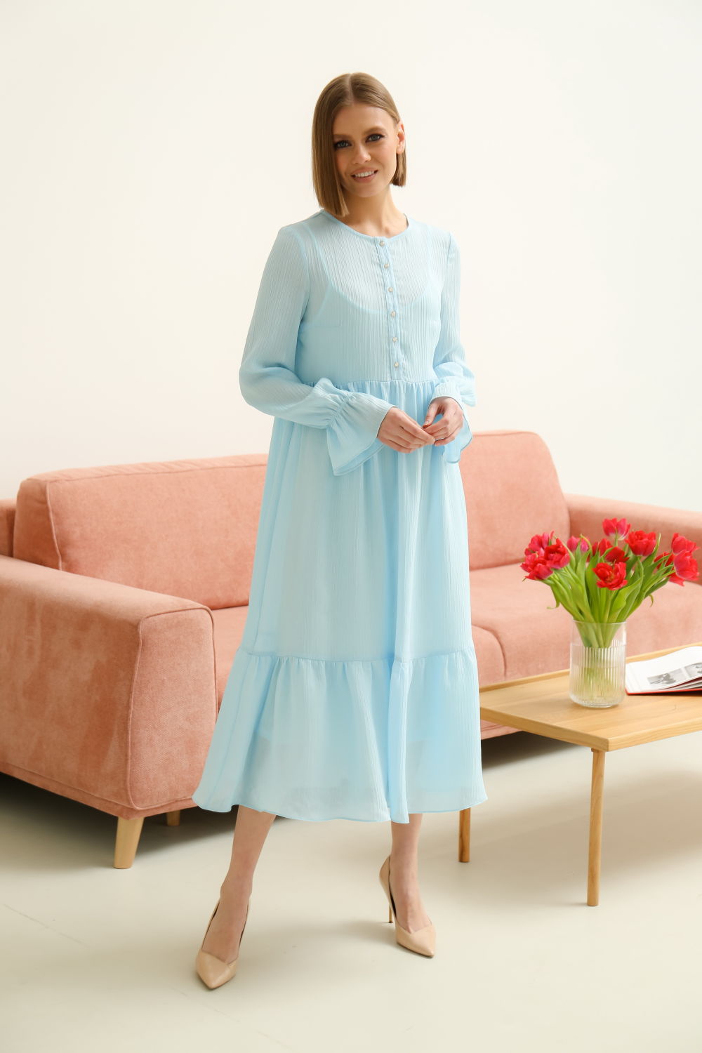 Невероятно стильное романтичное платье из легкого шифона.