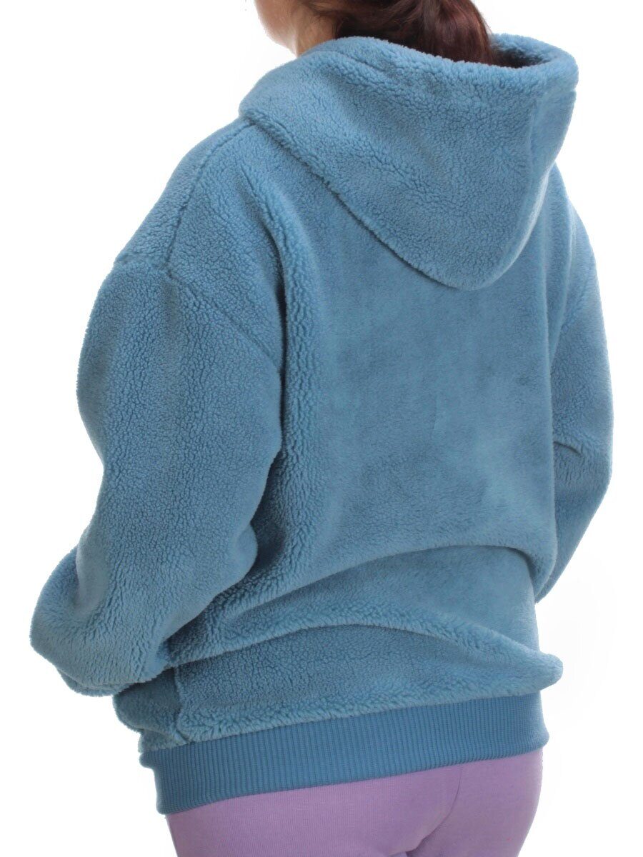 Трикотажные манжеты на рукавах и по низу толстовки.