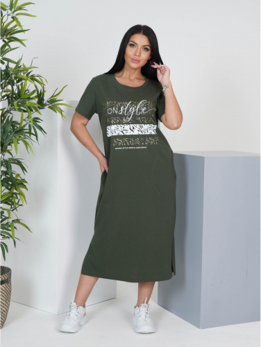 Удлиненное платье свободного кроя из хлопковой, мягкой ткани, с разрезами по бокам. На полочке имеется декоративный фотопринт, придающий изделию оригинальный вид.