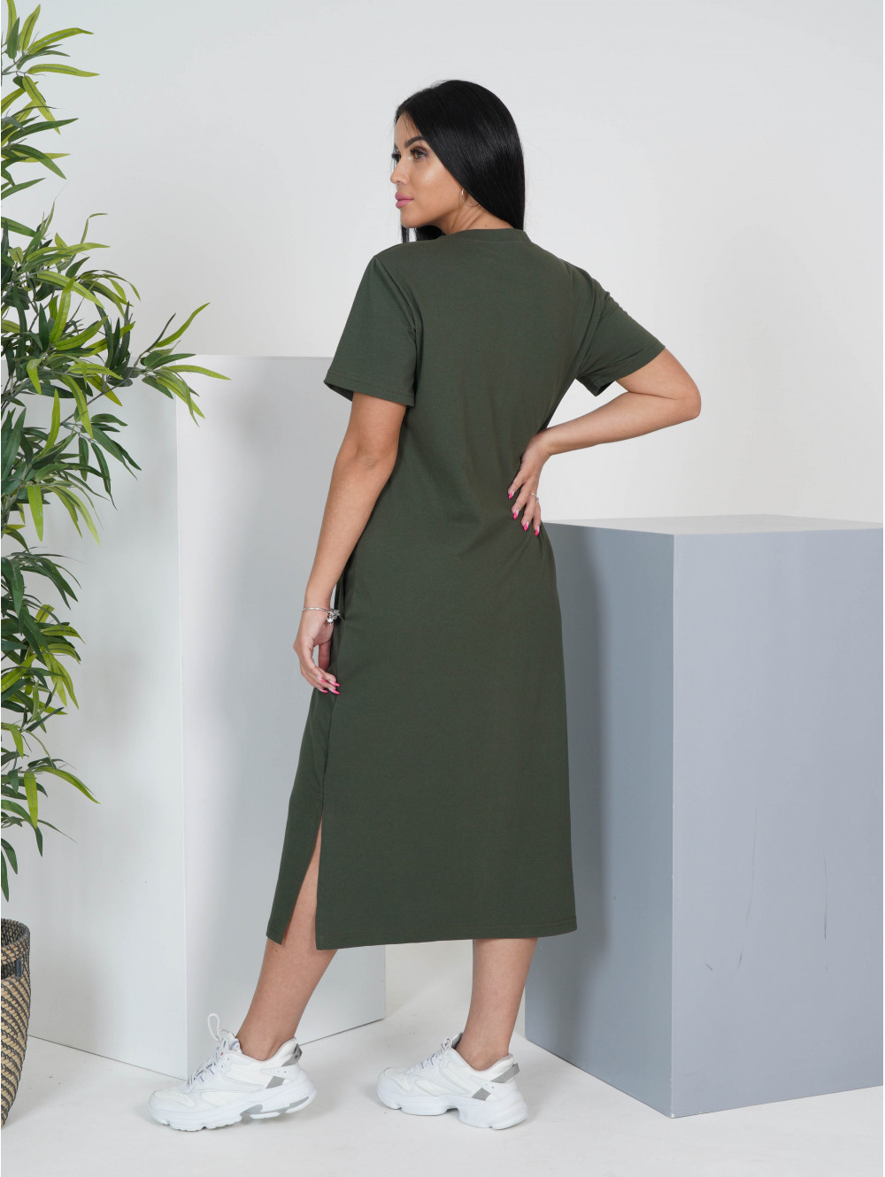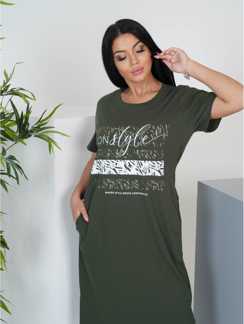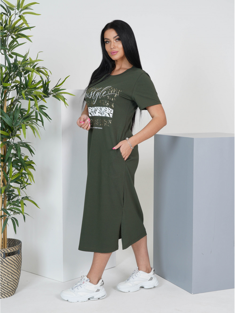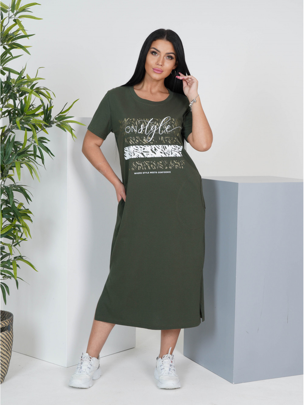 Удлиненное платье свободного кроя из хлопковой, мягкой ткани, с разрезами по бокам. На полочке имеется декоративный фотопринт, придающий изделию оригинальный вид. Карманы, в которые можно разместить разные мелочи, придадут больше удобства. Платье идеально подойдет для женщины с любым типом фигуры. Отличный вариант на каждый день.