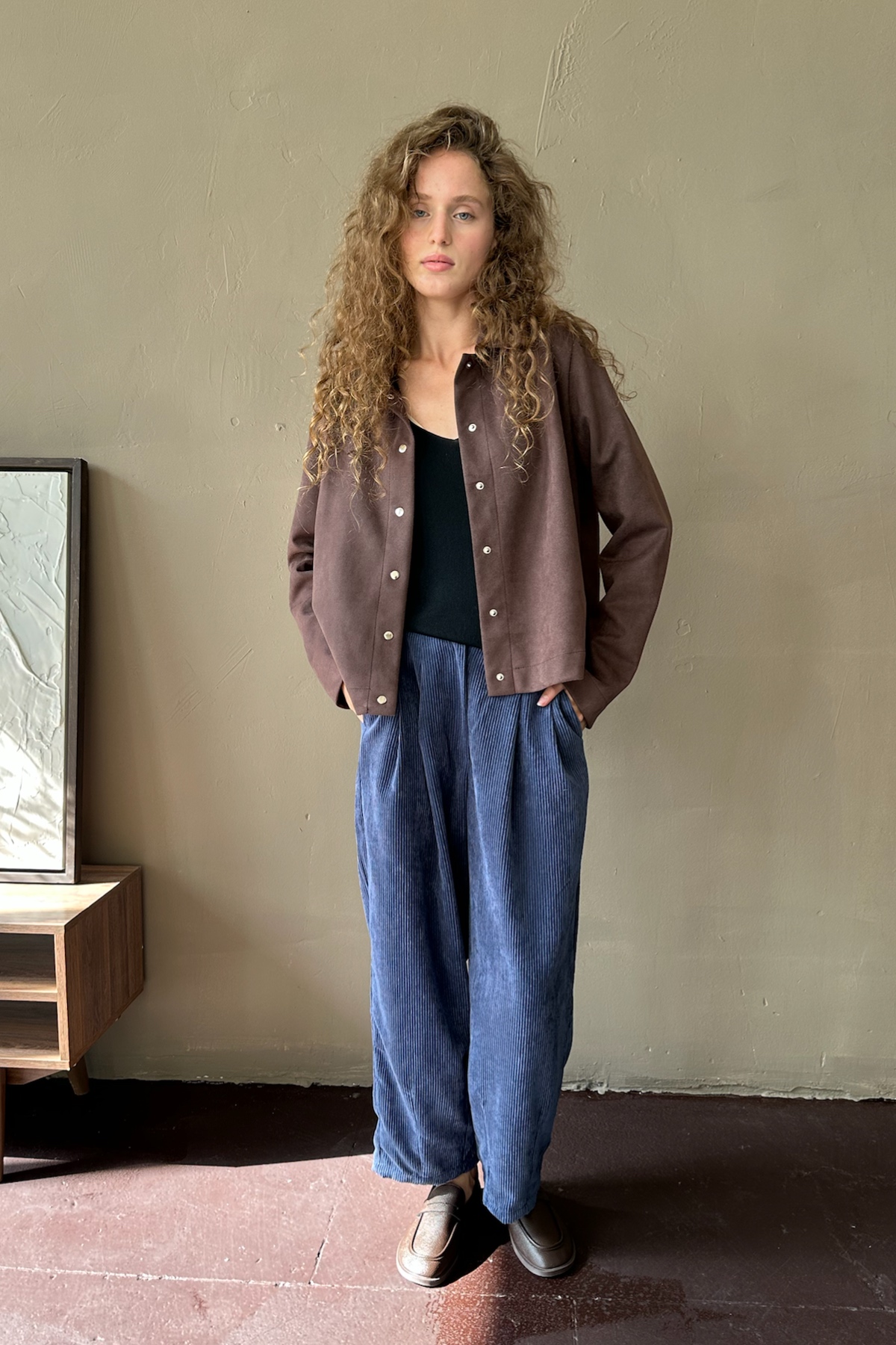 Брюки-бананы из мягкого вельвета с кармана. Подойдут для создания непринужденного городского образа. Брюки можно дополнить коротким топом или длинной рубашкой или блузкой. Такой комплект—идеальный  вариант для тех, кто ценит качество и минимализм.