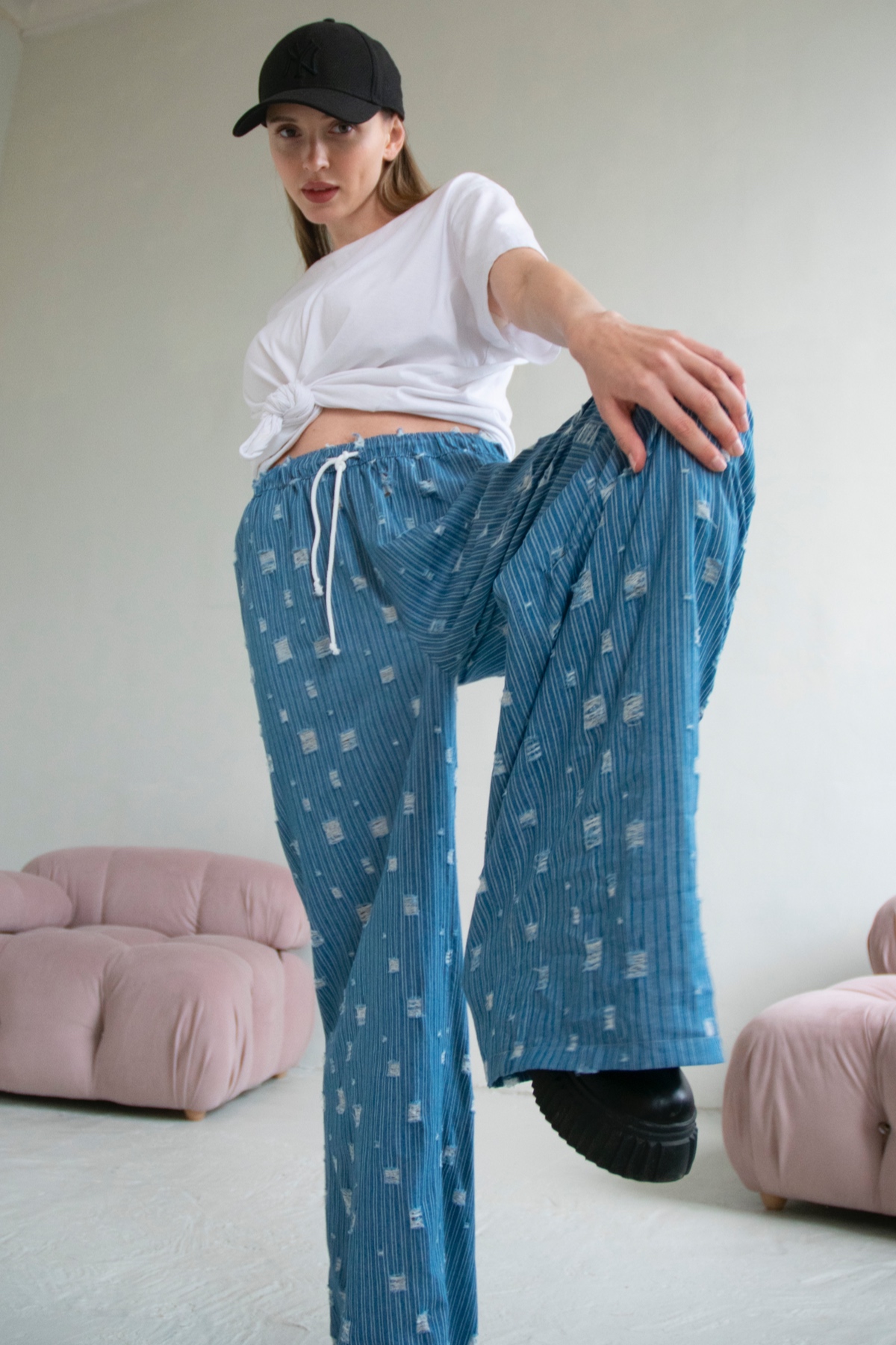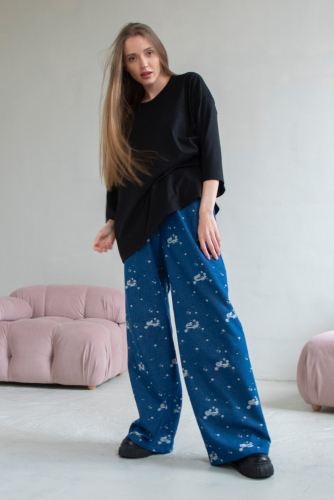 Наш бренд M&G all natural создаёт легкую и свободную одежду из натуральных тканей. Все изделия имеют безупречный пошив и идеальную посадку, используются ткани премиум качества. Брюки макси из качественного джинса (хлопка). Крой брюк свободный с завышенной линией талии, регулирующая шнурком. Хорошо садится на любой тип фигуры. Подойдёт для отдыха и дома. Стирать изделия вручную либо использовать машинную стирку в деликатном режиме. Температура воды должна быть не более 30 градусов, отжим 400/600 оборотов. После стрики может дать незначительную усадку.