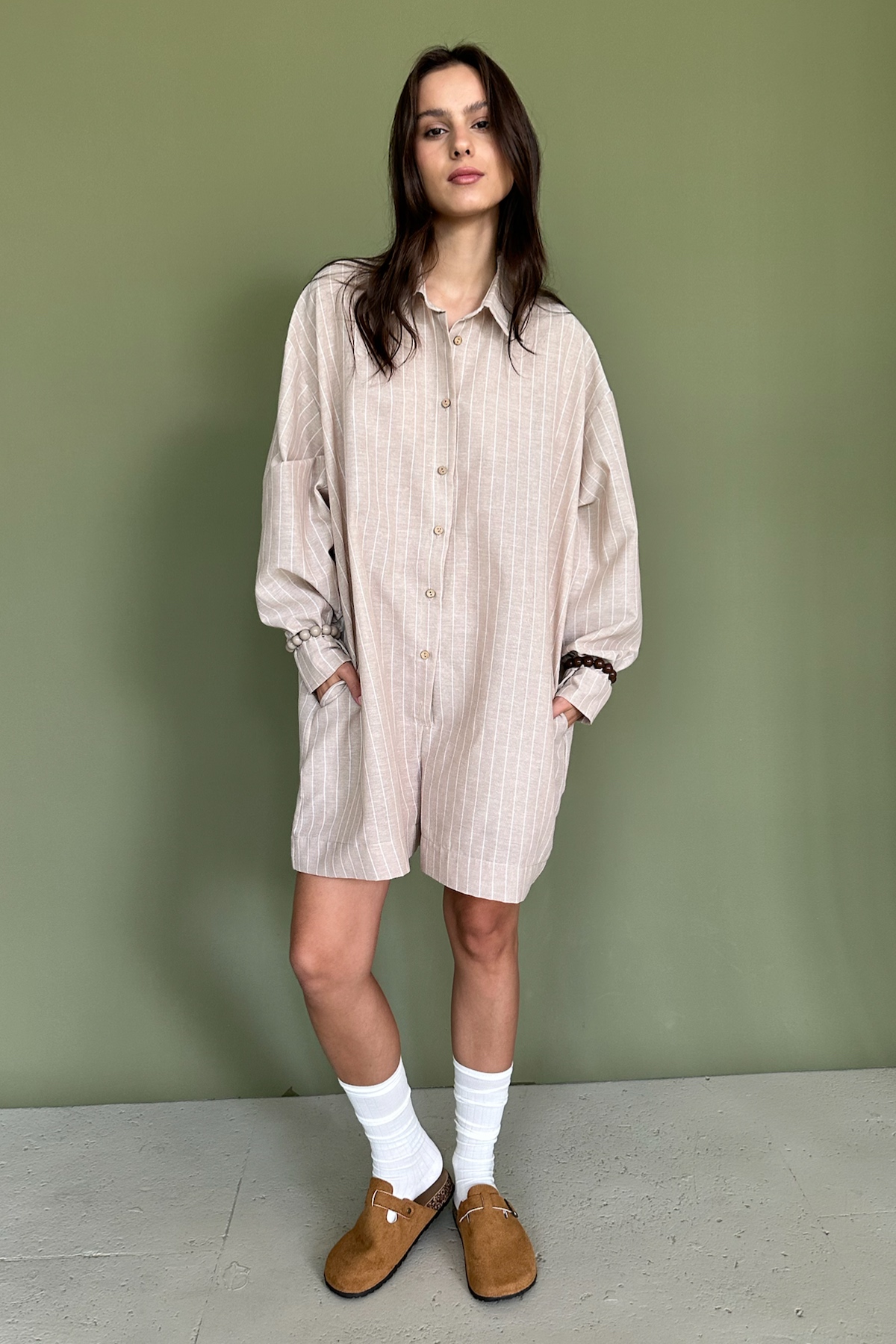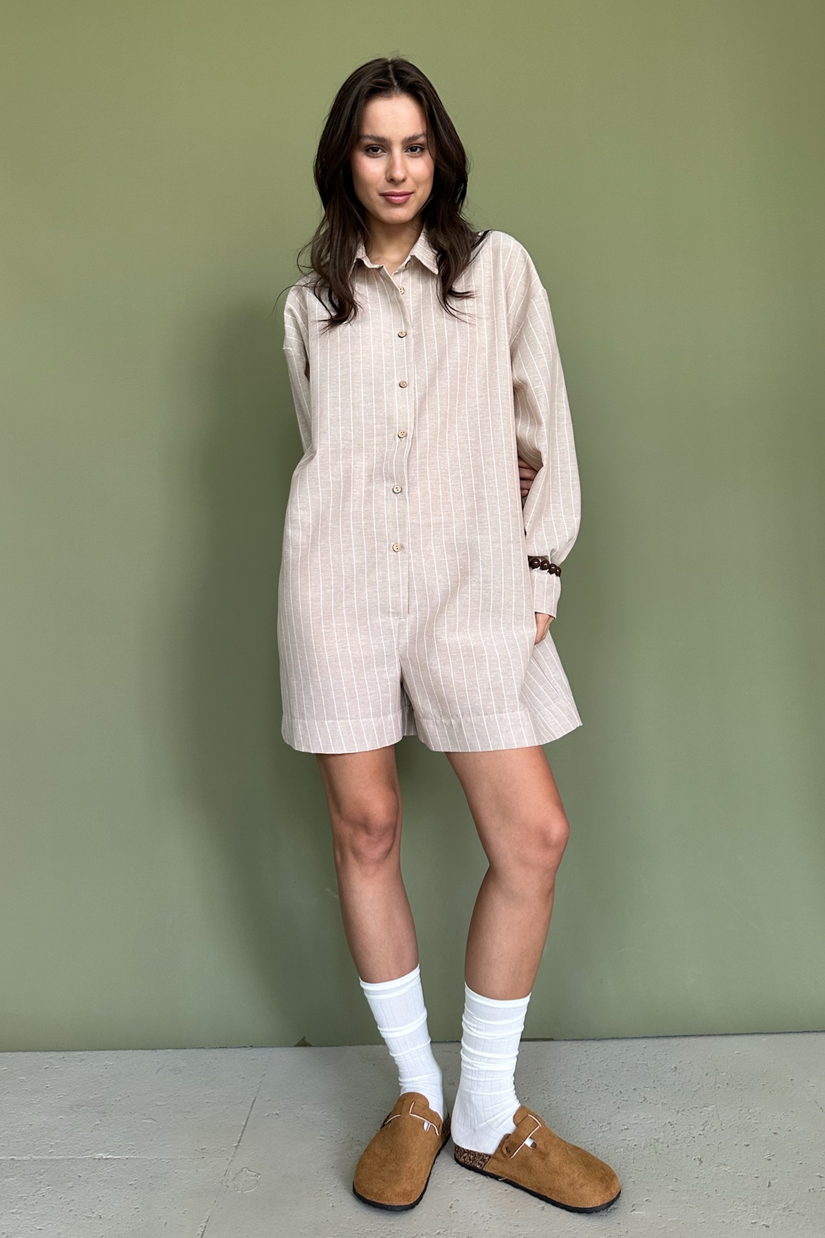 Комбинезон из хлопка  с карманами и ремешком. Смело подойдет на 42-48 размеры. Свободный крой комбинезона не стесняет ваши движения.  Он прекрасно садится на любой тип фигуры, не режет ноги и идеально под любой рост.