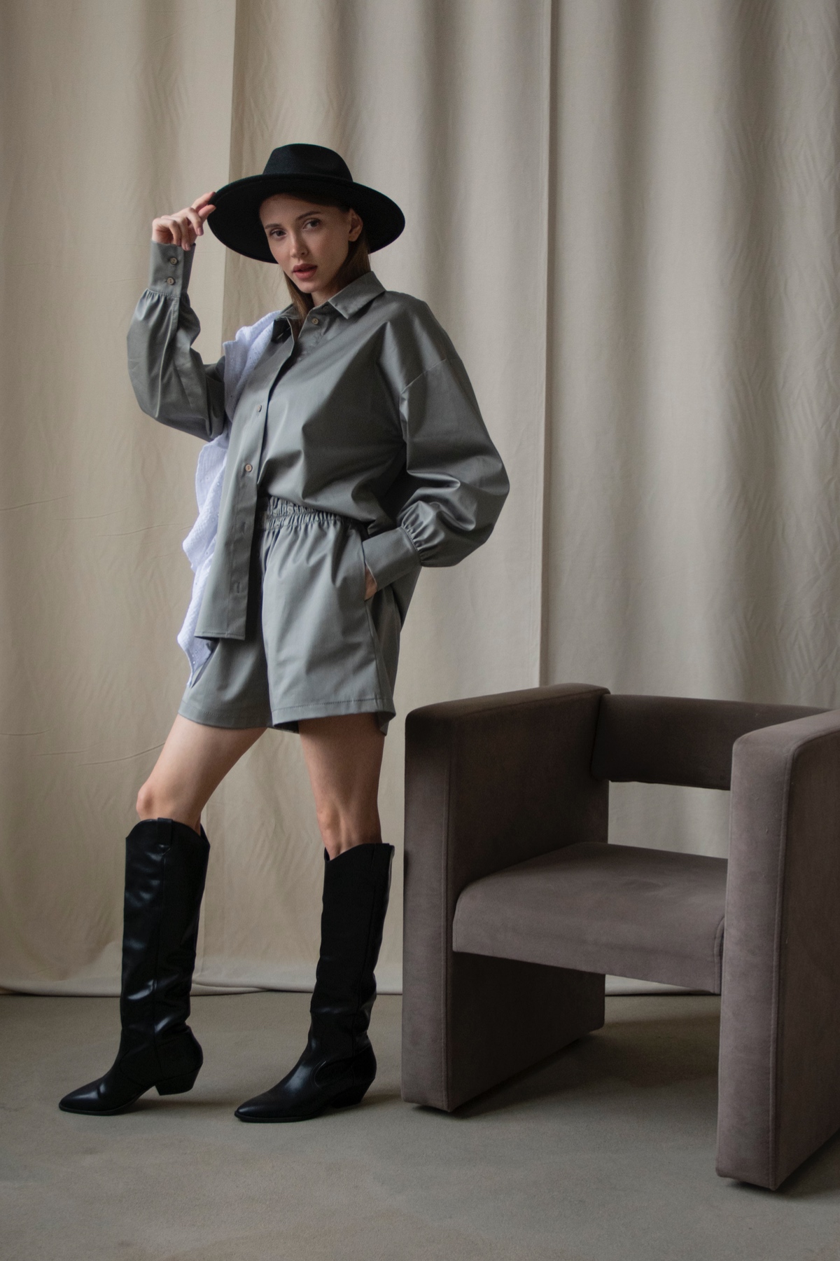 Все изделия имеют безупречный пошив и идеальную посадку. Костюм MUSE рубашка с воланчиком, шорты из хлопка с вискозой. Свободный крой рубашки и шорт не стесняет ваши движения, шорты с карманами (высокая посадка, на мягкой резинке, ручной работы) не давят. Костюм идеально садится на любой тип фигуры. Все изделия уникальны и отшиваются небольшими партиями. Стирка изделий вручную либо использовать машинную стирку в деликатном режиме (не более 30 градусов).