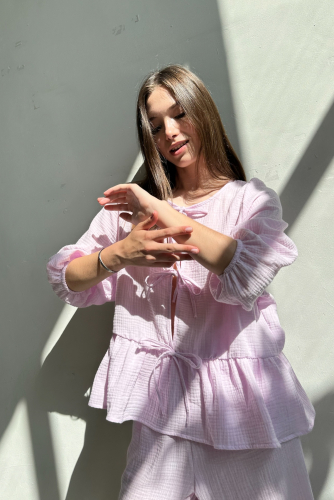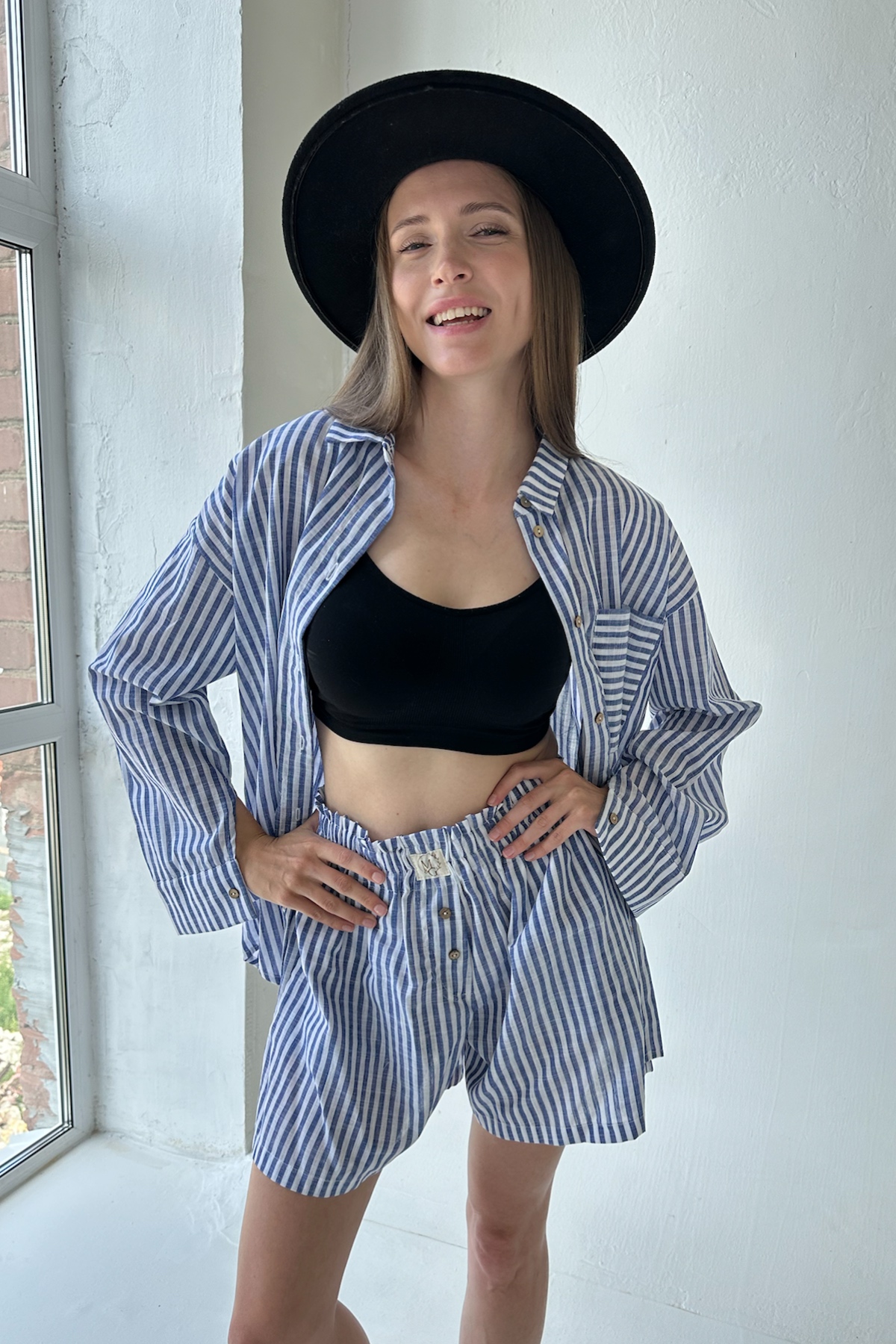 Все изделия имеют безупречный пошив и идеальную посадку. Костюм SET003 рубашка удлиненная с шортами из 100% хлопка. Свободный крой рубашки и шорт не стесняет ваши движения, шорты с карманами (высокая посадка, на мягкой резинке, ручной работы) не давят и подходят беременным. Костюм идеально садится на любой тип фигуры. Все изделия уникальны и отшиваются небольшими партиями. Стирка изделий вручную либо использовать машинную стирку в деликатном режиме (не более 30 градусов).