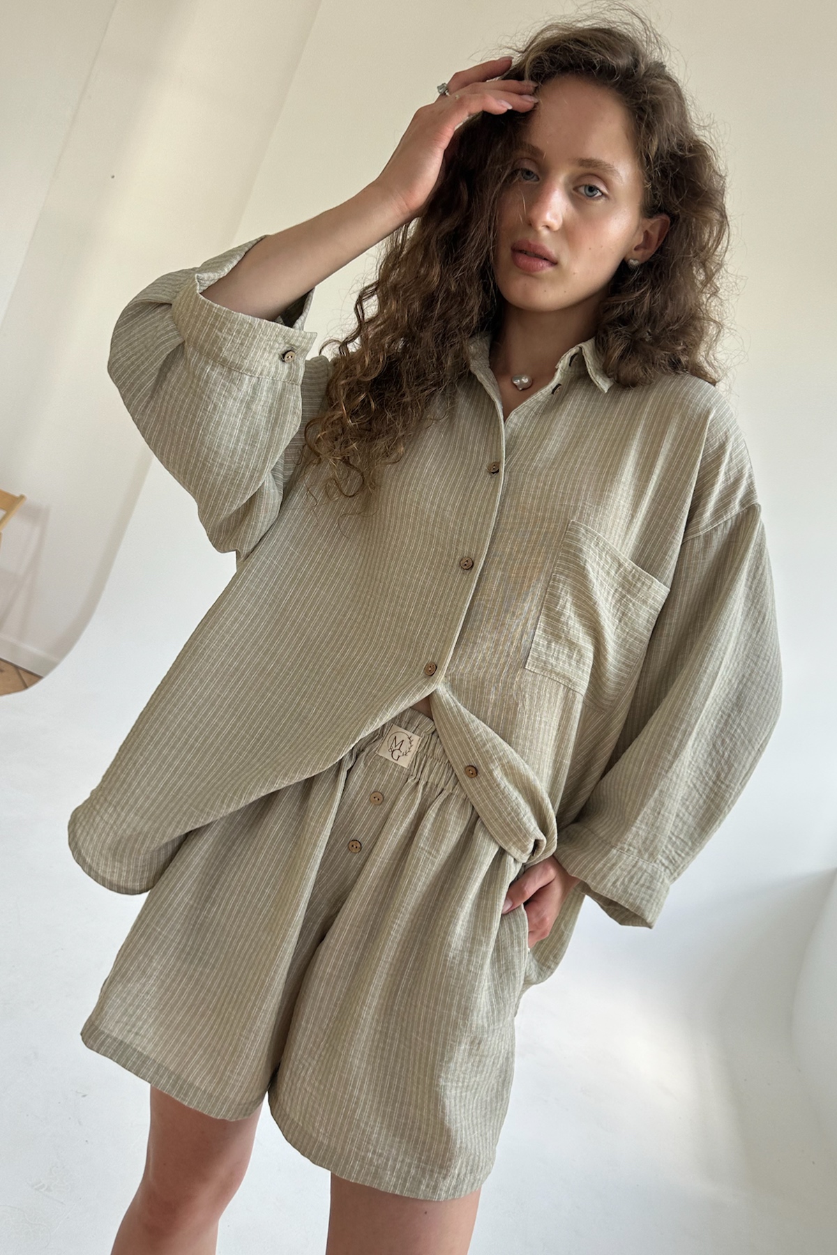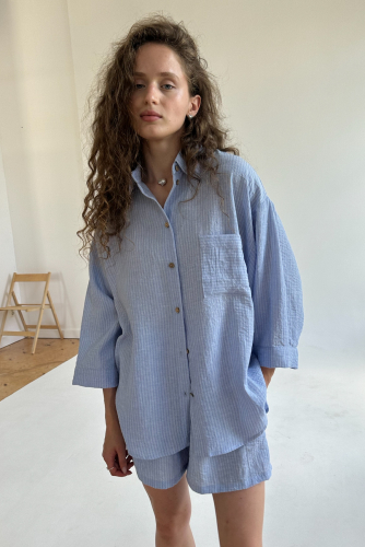 Все изделия имеют безупречный пошив и идеальную посадку. Костюм SET019 рубашка удлиненная с шортами из мягкого вареного хлопка. Свободный крой рубашки и шорт не стесняет ваши движения, шорты с карманами (высокая посадка, на мягкой резинке, ручной работы) не давят и подходят беременным. Костюм идеально садится на любой тип фигуры. Все изделия уникальны и отшиваются небольшими партиями. Стирка изделий вручную либо использовать машинную стирку в деликатном режиме (не более 30 градусов).
