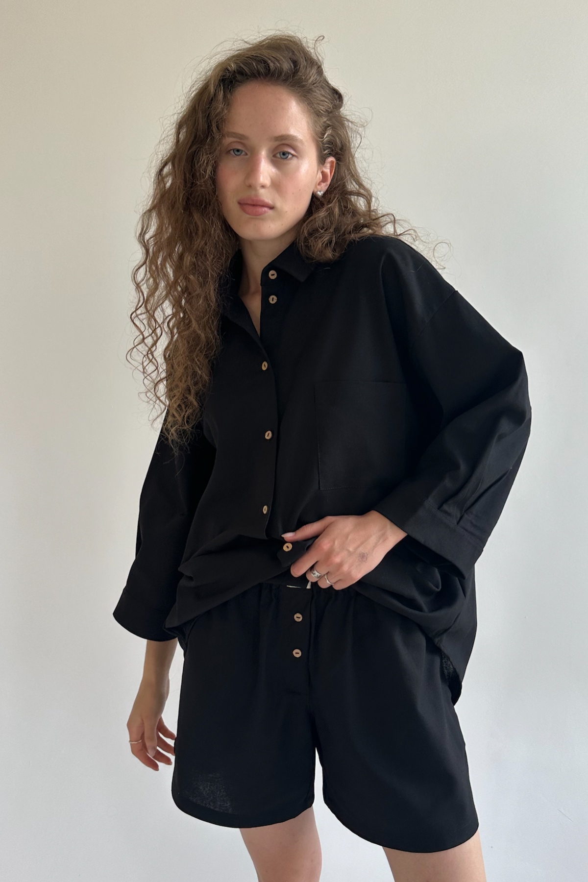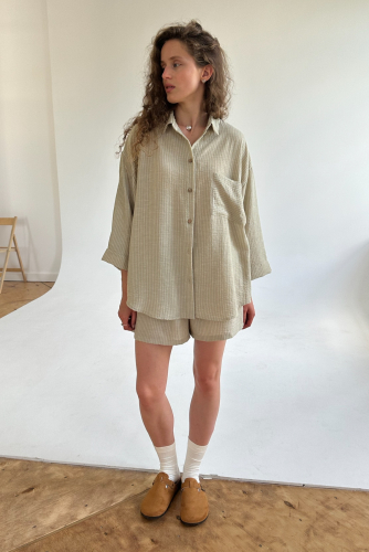 Все изделия имеют безупречный пошив и идеальную посадку. Костюм SET019 рубашка удлиненная с шортами из хлопка. Свободный крой рубашки и шорт не стесняет ваши движения, шорты с карманами (высокая посадка, на мягкой резинке, ручной работы) не давят и подходят беременным. Костюм идеально садится на любой тип фигуры. Все изделия уникальны и отшиваются небольшими партиями. Стирка изделий вручную либо использовать машинную стирку в деликатном режиме (не более 30 градусов).
