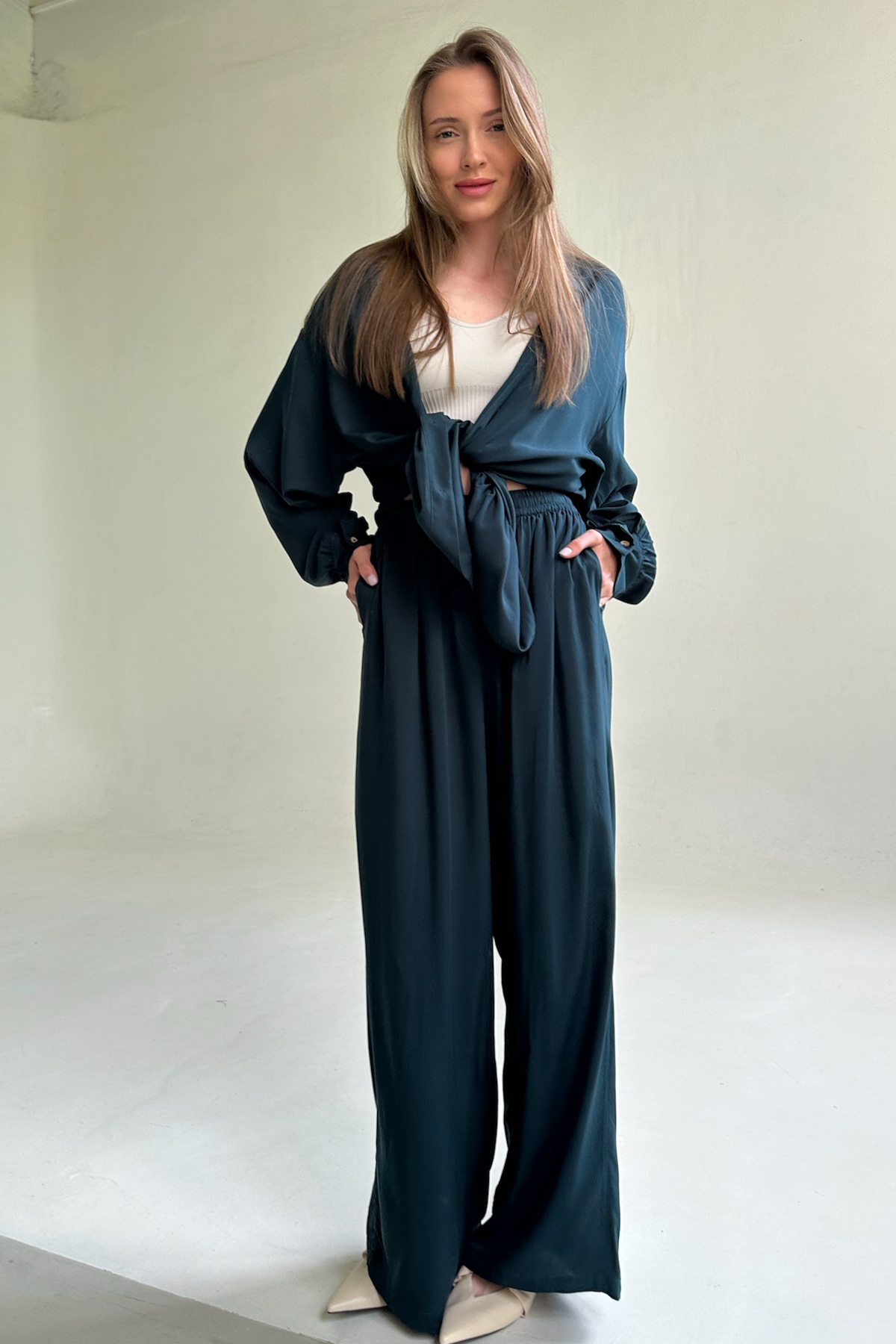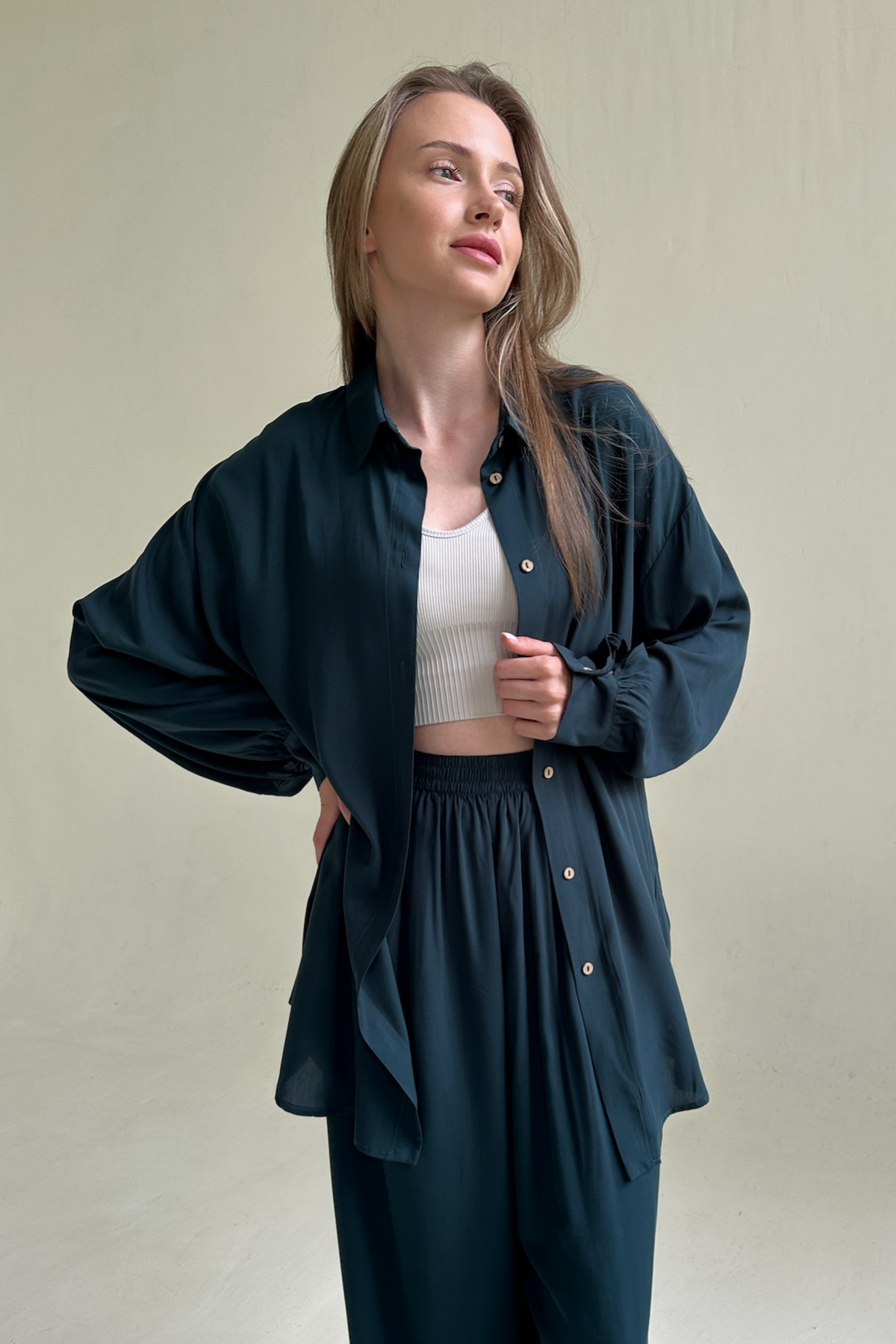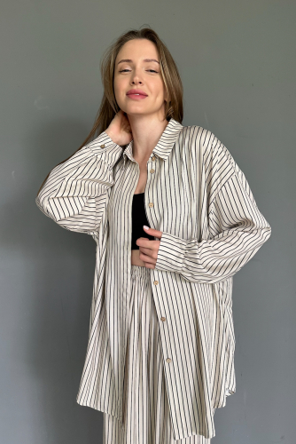 Все изделия имеют безупречный пошив и идеальную посадку. Костюм SET065 рубашка удлиненная с брюками из 100% вискозы. Свободный крой рубашки и брюк не стесняет ваши движения, шорты с карманами (высокая посадка, на мягкой резинке, ручной работы) не давят и подходят беременным. Костюм идеально садится на любой тип фигуры. Все изделия уникальны и отшиваются небольшими партиями. Стирка изделий вручную либо использовать машинную стирку в деликатном режиме (не более 30 градусов).