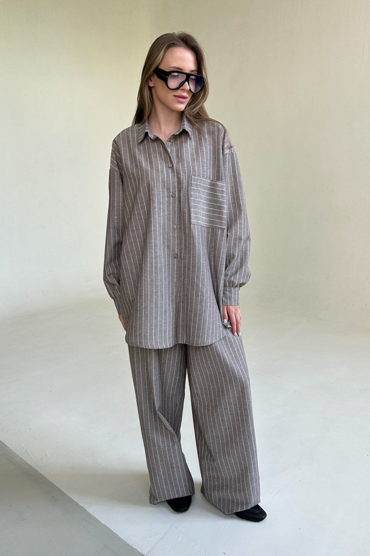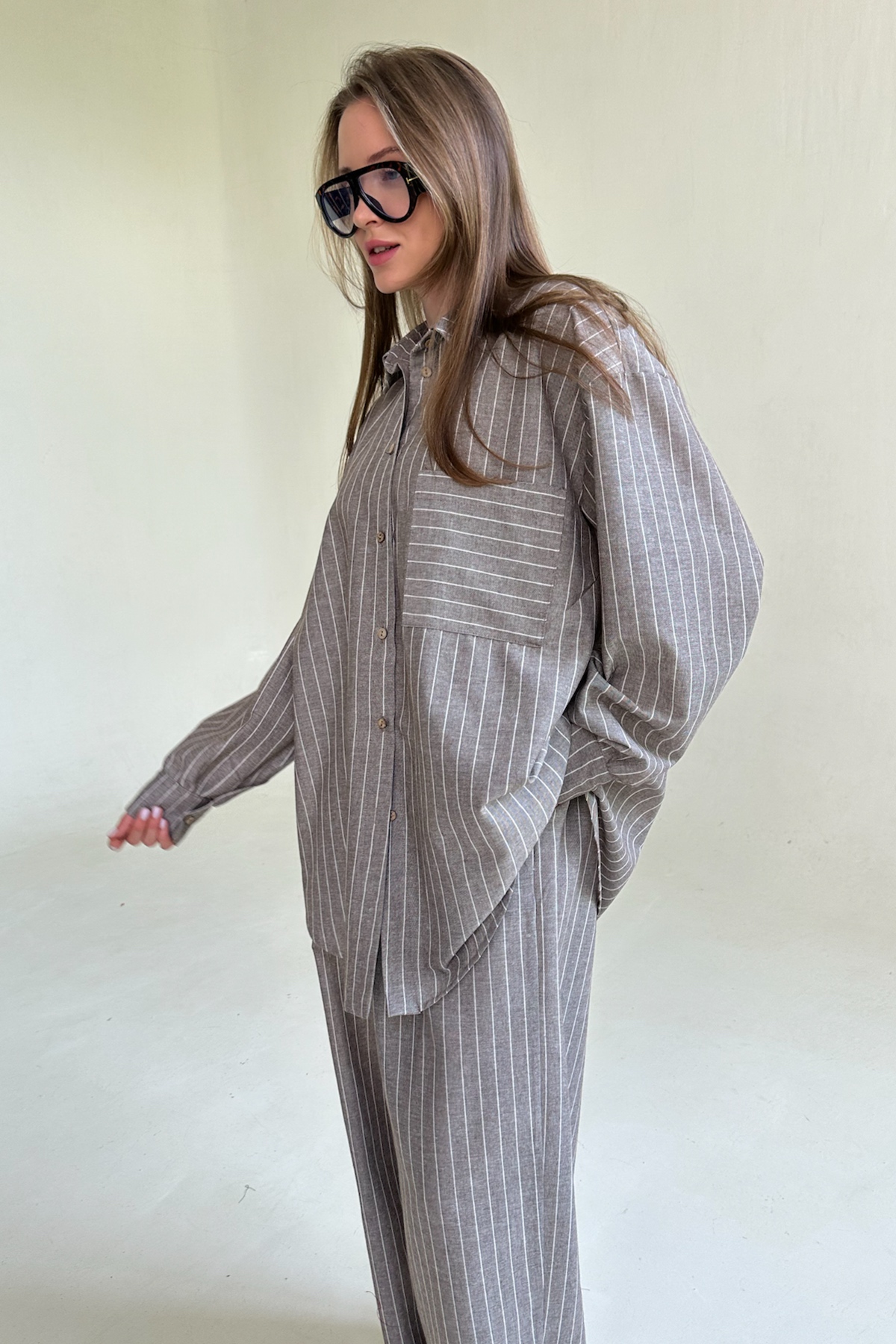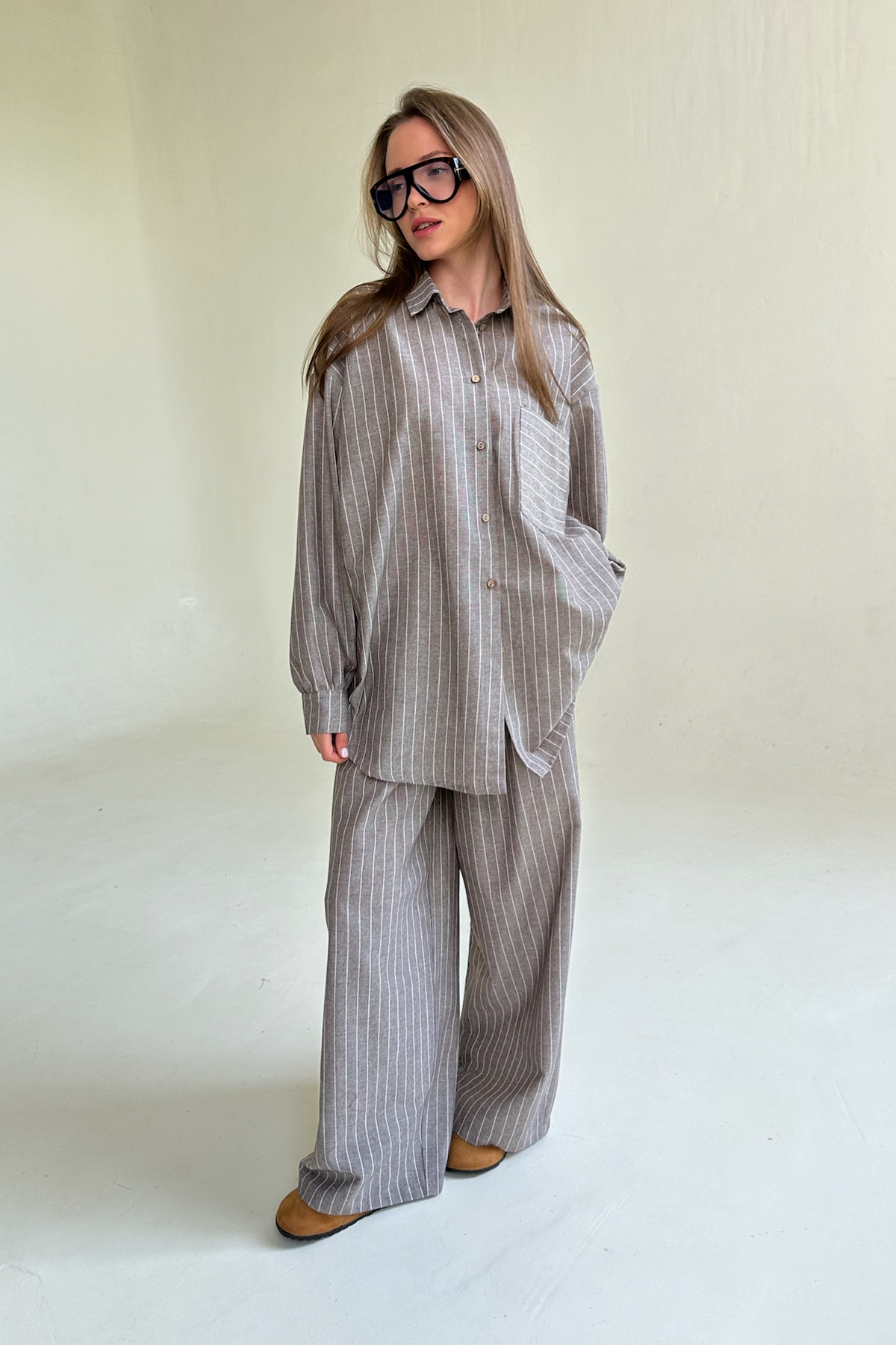 Все изделия имеют безупречный пошив и идеальную посадку. Костюм SET065 рубашка удлиненная с брюками из 70% хлопок, 30% па. Свободный крой рубашки и брюк не стесняет ваши движения, брюки с карманами (высокая посадка, на мягкой резинке, ручной работы) не давят и подходят беременным. Костюм идеально садится на любой тип фигуры. Все изделия уникальны и отшиваются небольшими партиями. Стирка изделий вручную либо использовать машинную стирку в деликатном режиме (не более 30 градусов).