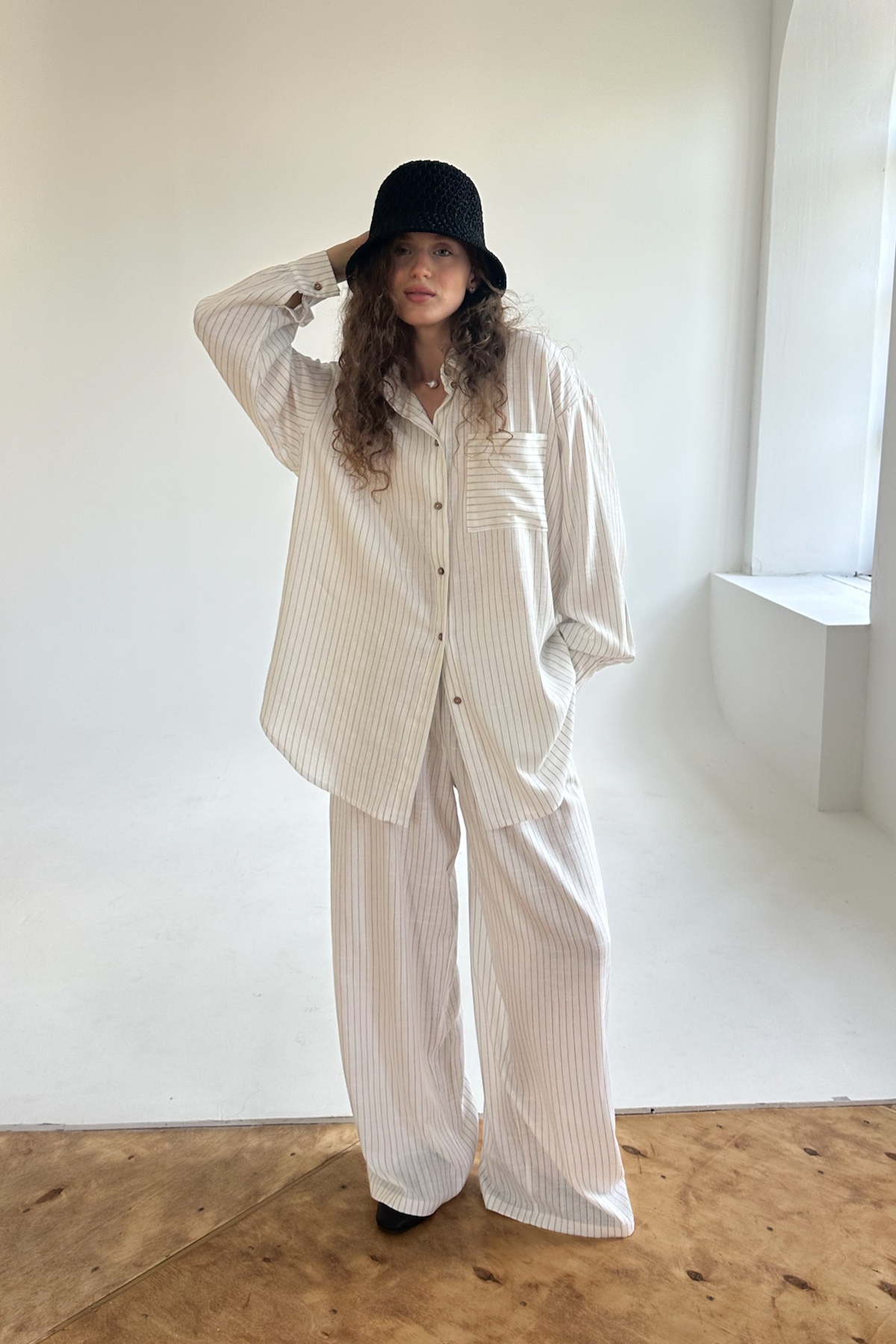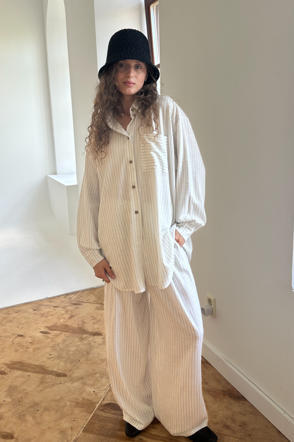 Все изделия имеют безупречный пошив и идеальную посадку. Костюм SET065 рубашка удлиненная с брюками изо льна и вискозы. Свободный крой рубашки и брюк не стесняет ваши движения, шорты с карманами (высокая посадка, на мягкой резинке, ручной работы) не давят и подходят беременным. Костюм идеально садится на любой тип фигуры. Все изделия уникальны и отшиваются небольшими партиями. Стирка изделий вручную либо использовать машинную стирку в деликатном режиме (не более 30 градусов).