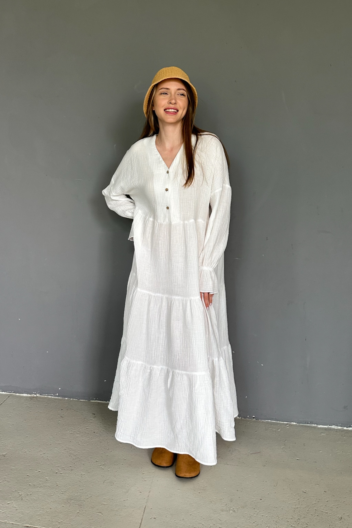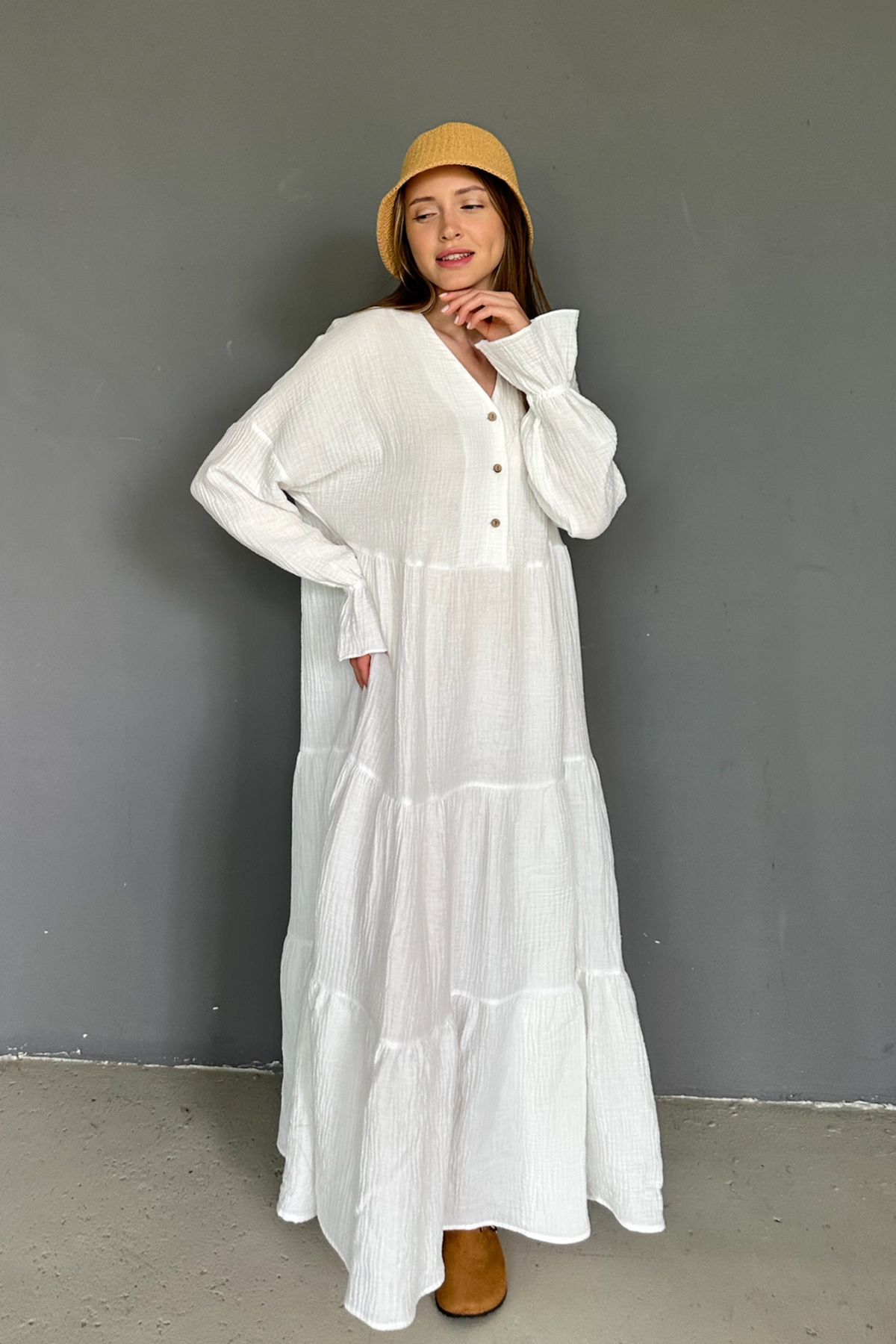 Платье длинное из хлопка - мягкого муслина. Смело подойдет на XS-XL. Свободный крой платья не стесняет ваши движения.  Платье прекрасно садится на любой тип фигуры, не режет ноги и идеально под любой рост.