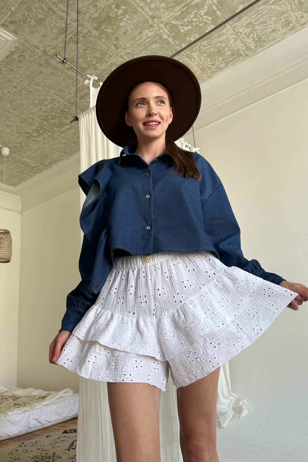 Все изделия имеют безупречный пошив и идеальную посадку. Элегантные шортами из хлопка с кружевом. Свободный крой шорт не стесняет ваши движения, шорты без карманов (высокая посадка, на мягкой резинке, ручной работы) не давят. Шорты идеально садится на любой тип фигуры.