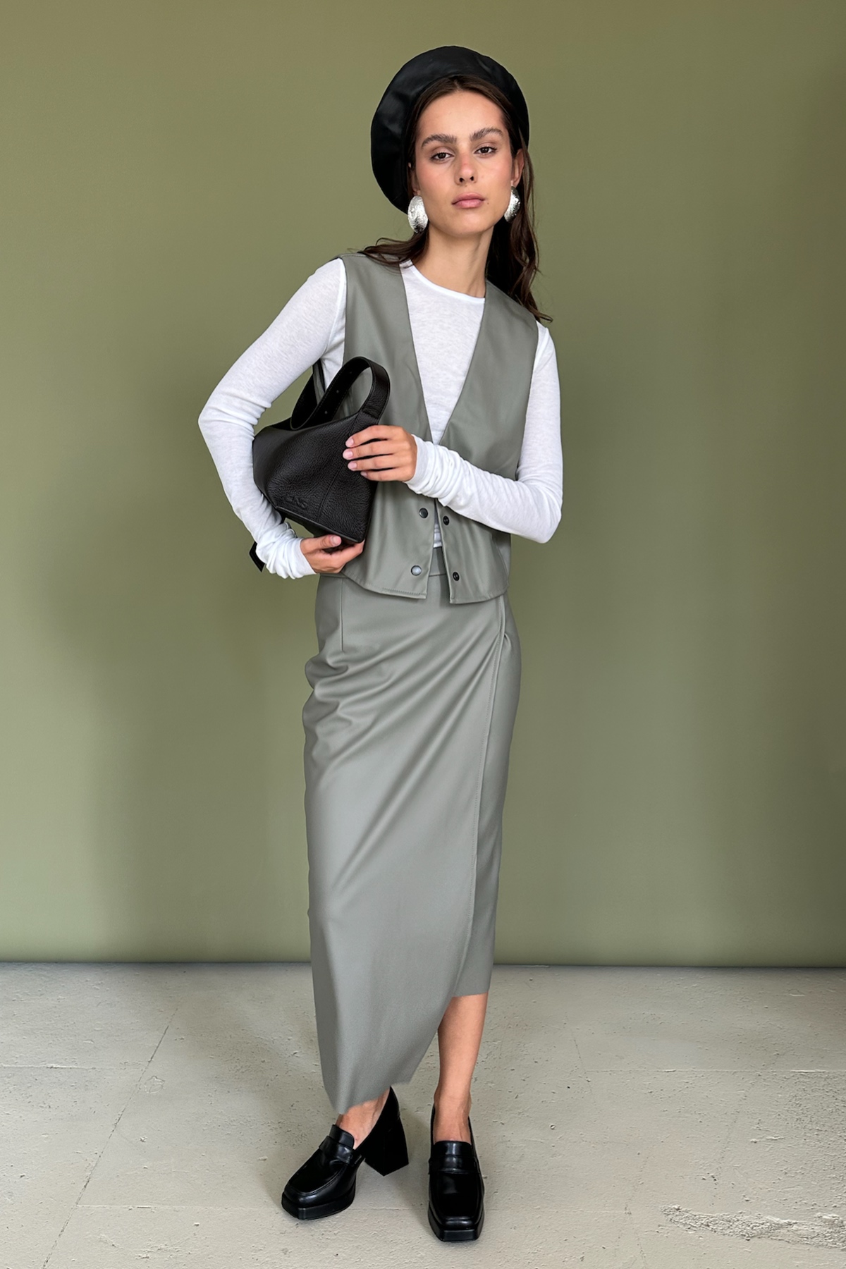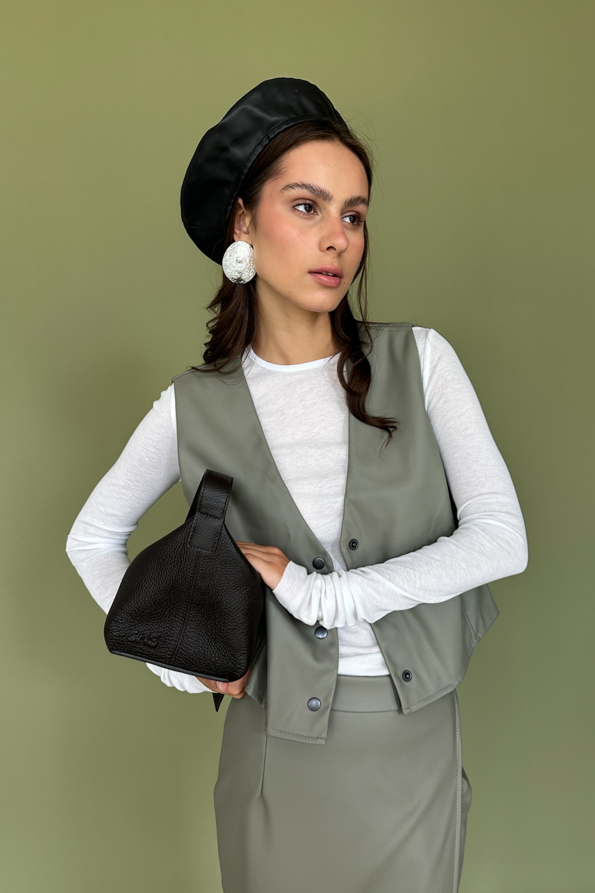 Юбка эко-кожа ECO040/01/Оливка