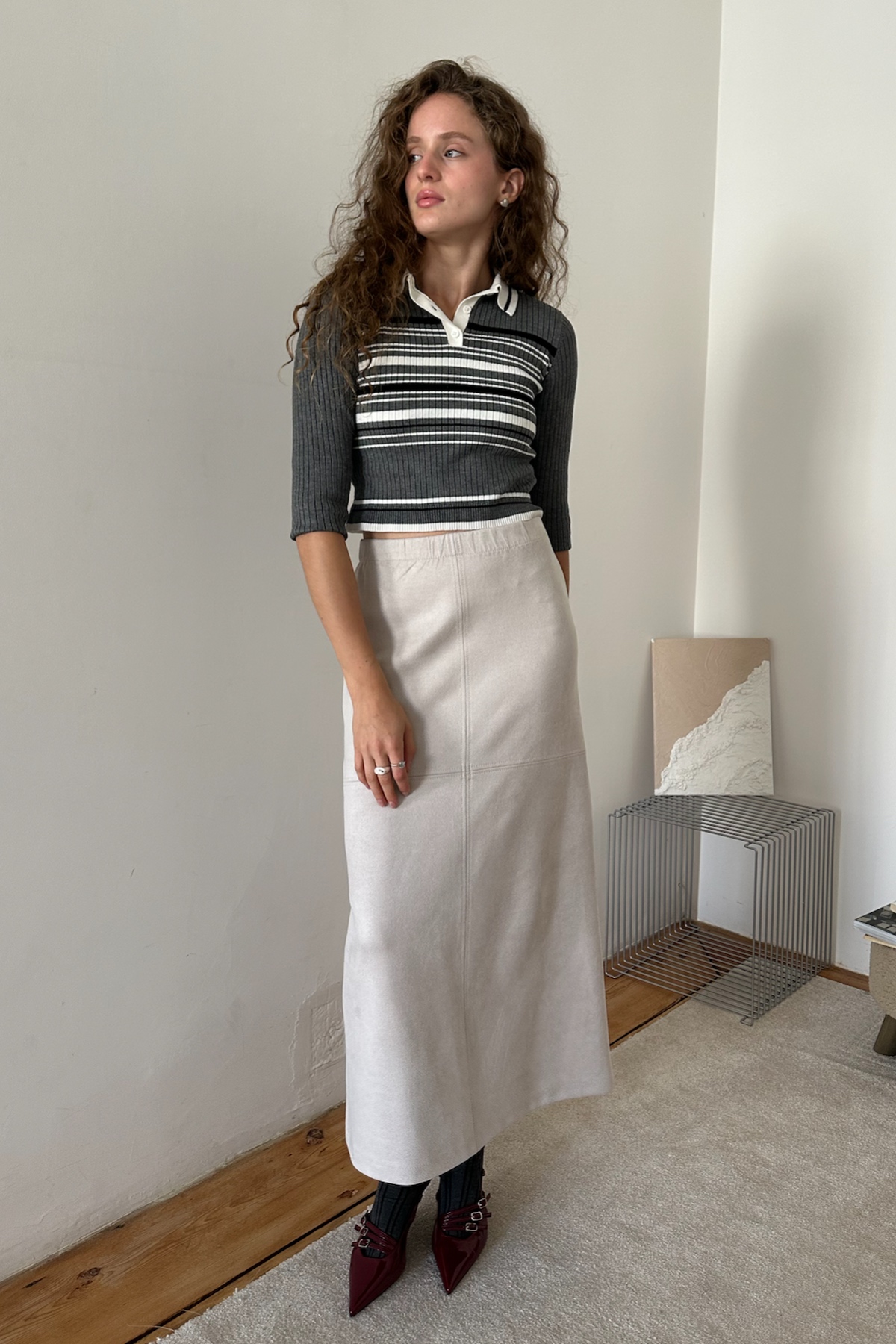 Юбка макси клешеного силуэта из мягкой эко-замши, разрех сзади. Подойдут для создания непринужденного городского образа. Юбку можно дополнить коротким топом или длинной рубашкой или блузкой. Такой комплект—идеальный  вариант для тех, кто ценит качество и минимализм.