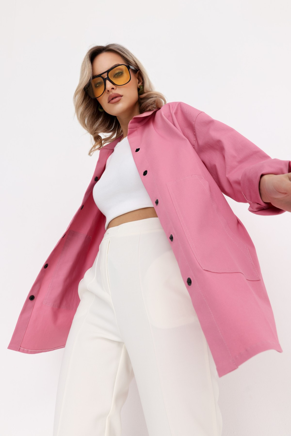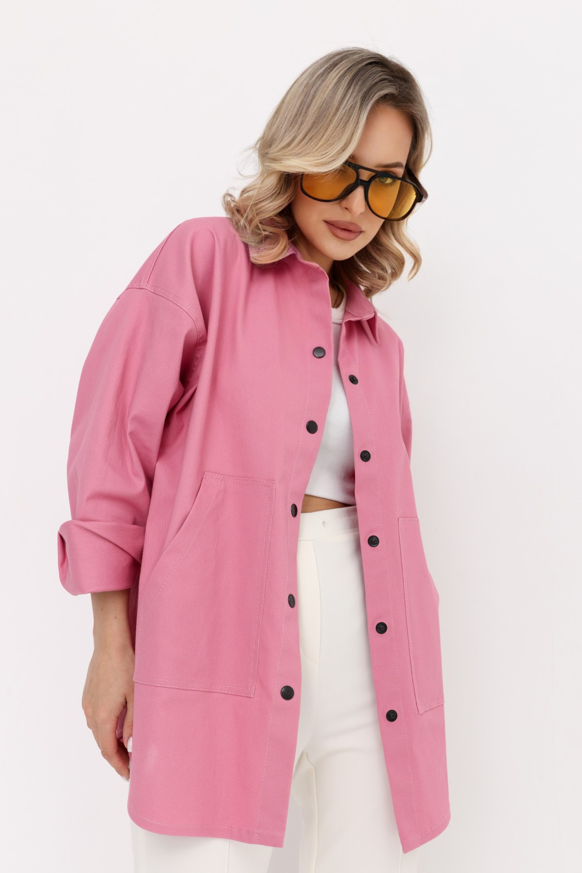Стильная рубашка свободного силуэта из  джинса с большими карманами. Идельно подходит для работы и отдыха.