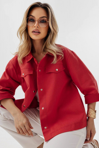 Стильный жакет свободного силуэта  с клапанами - имитация кармана. Застежка - кнопки. Жакет представлен  до  52 размера с акцентом на комфорт для любого типа фигур.