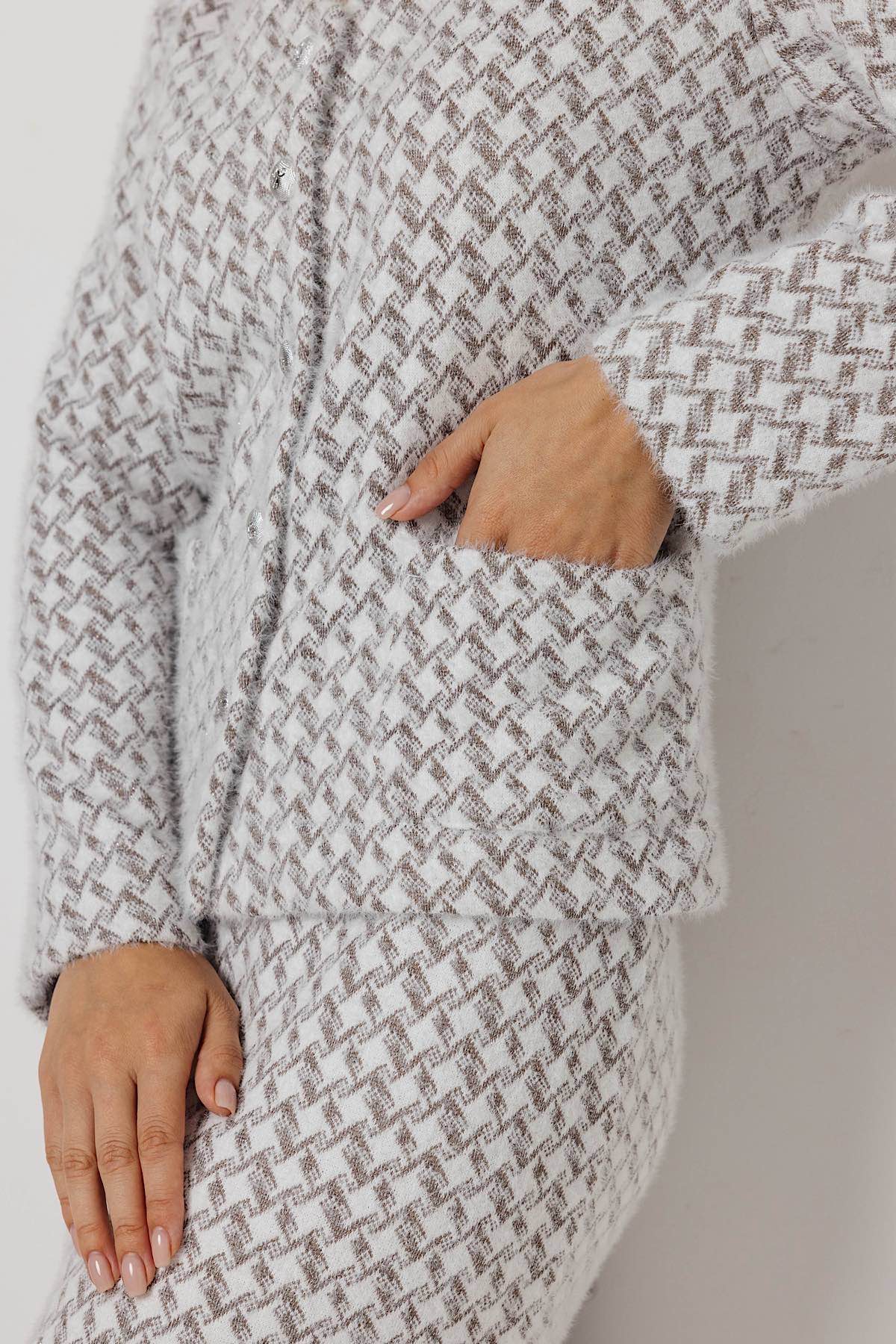 Трикотажный жакет без подклада, классического силуэта с V- вырезом горловины и втачным рукавом полной длины — это универсальный предмет гардероба, который подойдет для повседневного образа. Застежка - пуговицы. Жакет будет подойдет для офиса, школы, повседневного образа. Можно комплектовать с юбкой 152/13