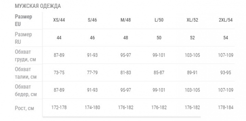 Размерная сетка Женская одежда