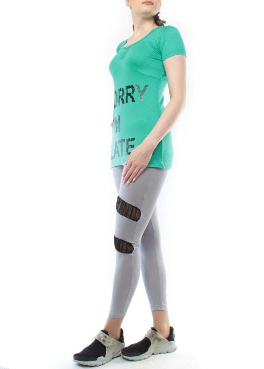 1215 GREEN/GRAY Спортивный костюм для фитнеса женский (90% вискоза, 10% лайкра)