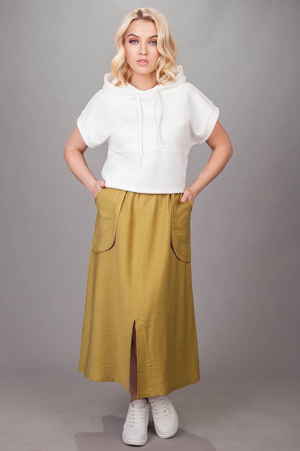 Юбка лён-бохо, с эффектом "варенки, благодаря этому изделие не даёт усадку при стирке. Юбка женская из льна с притачным поясом на резинке, что обеспечивает дополнительный комфорт при носке. Два накладных кармана.