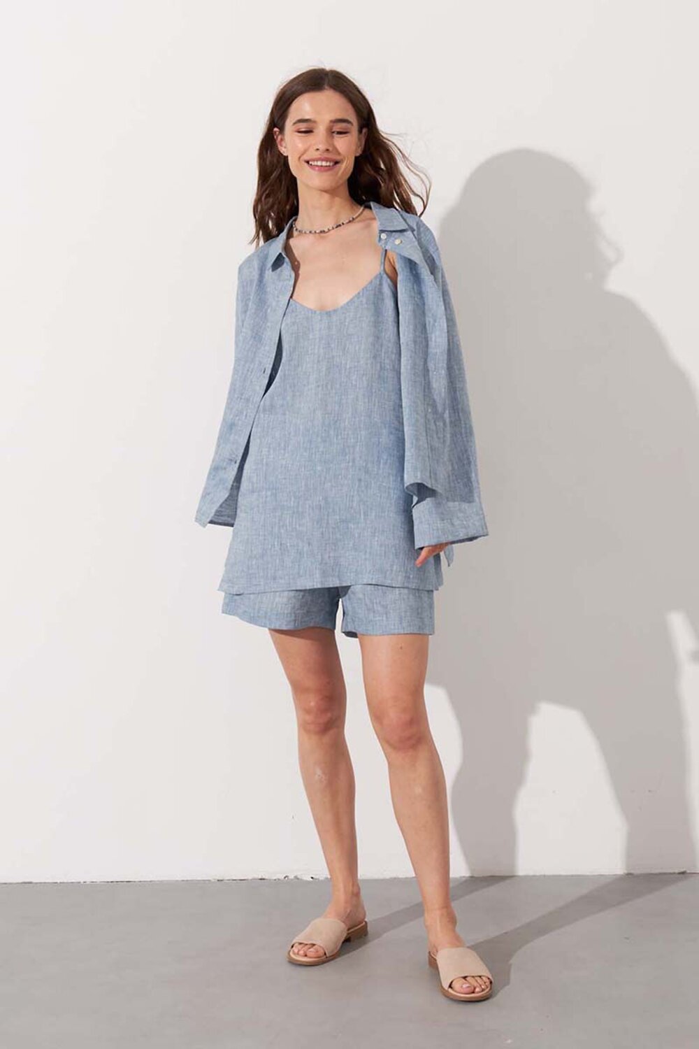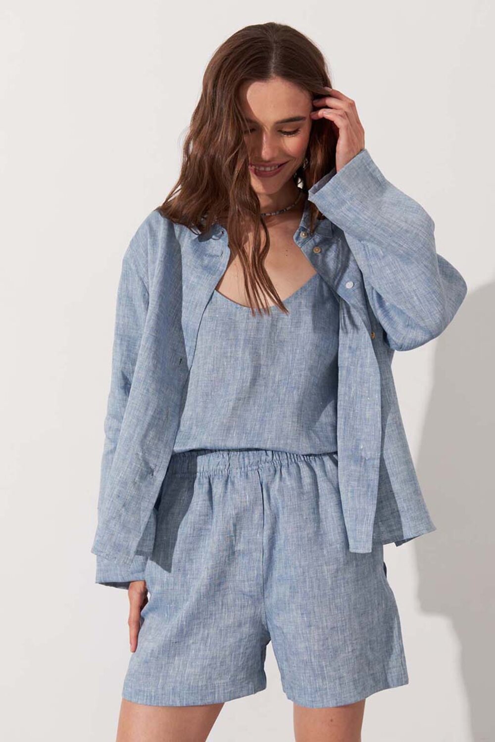 Шорты с высокой из натурального высококачественного льна, светло-голубого цвета , подойдут для создания непринужденного городского или домашнего образа. Шорты можно дополнить короткой или длинной рубашкой Ypsilon на пуговицах. Такой комплект—идеальный вариант для тех, кто ценит качество и минимализм. Сделано в России на собственном производстве. Светло-голубой меланж