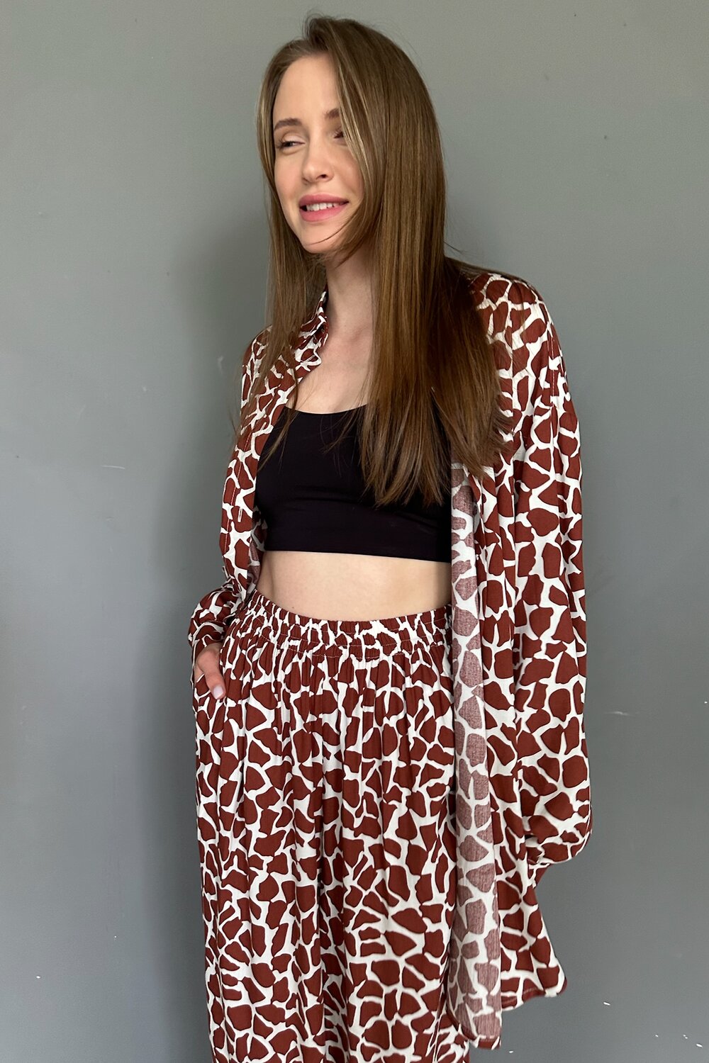 Все изделия имеют безупречный пошив и идеальную посадку. Костюм SET065 рубашка удлиненная с брюками из 100% вискозы. Свободный крой рубашки и брюк не стесняет ваши движения, шорты с карманами (высокая посадка, на мягкой резинке, ручной работы) не давят и подходят беременным. Костюм идеально садится на любой тип фигуры. Все изделия уникальны и отшиваются небольшими партиями. Стирка изделий вручную либо использовать машинную стирку в деликатном режиме (не более 30 градусов).