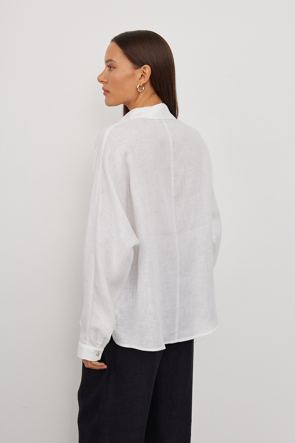 Укороченная рубашка из натурального льна, белого цвета. Короткая рубашка оверсайз является трендм сезона и стильно дополнит образы для отдыха с шортами и короткими топами, легинсами, джинсами, брюками и юбками. Рубашку можно носить как блузку, а можно носить как второй слой поверх футболки или топа. Сделано в России на собственном производстве. Белый