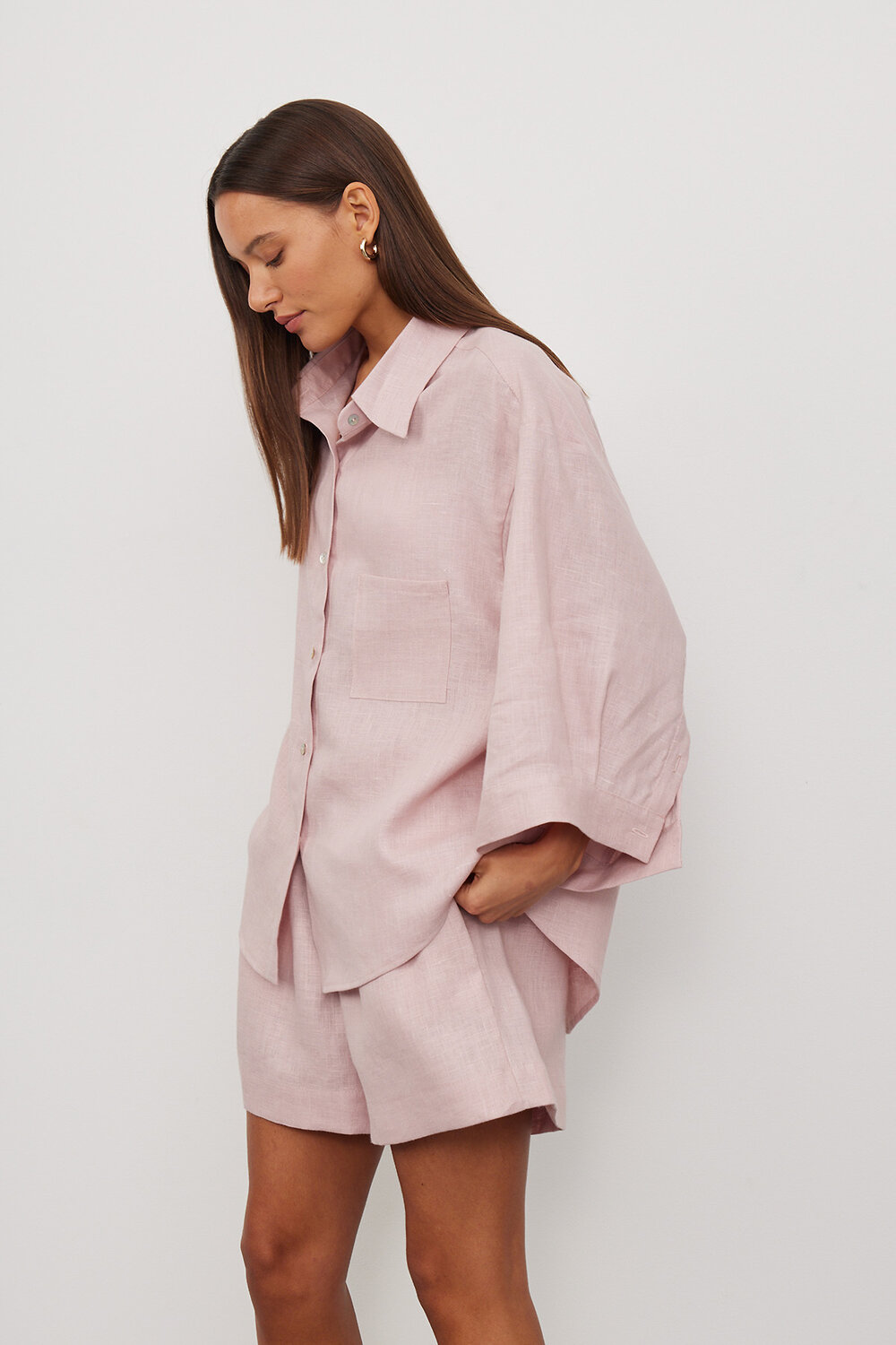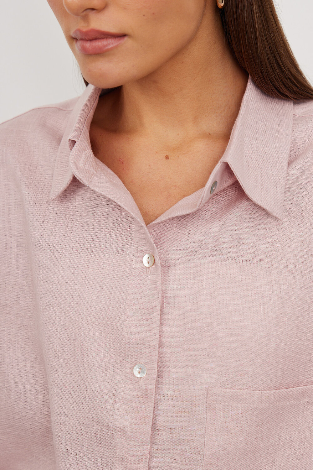 Качественная женская рубашка изо льна свободного кроя, с кокеткой на спине, и разрезами по бокам. Рубашка подходит как для офиса, так и для повседневных образов. Тонкий длинноволокнистый лен особенно прочный, отлично пропускает воздух и впитывает влагу, что делает его идеальным выбором для гардероба. Свободная и удлиненная, эта легкая рубашка может дополнить образы для отдыха с шортами и короткими топами, легинсами, джинсами, брюками и юбками. Рубашку можно носить как блузку, а можно носить как второй слой поверх футболки или топа. Сделано в России на собственном производстве. Пудровый