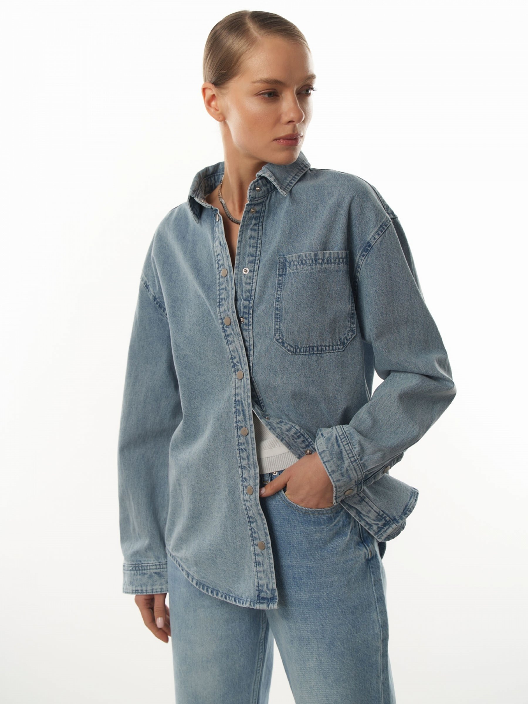 Классическая рубашка из прочного и легкого денима.Модель с застежкой на кнопки медного цвета имеет нагрудный карман. В сочетании с парными джинсами создает универсальный повседневный образ. Классика городского стиля. Сдержанные эффекты по швам и удобная длина делают модель универсальной: рубашку легко включить в гардероб на каждый день, сочетать и с джинсами, и с юбками.Рубашка выполнена классической медной строчкой. Для модели выбрали прочный деним из 100% хлопка в классических цветах : темно-синий и светло-голубой. 100% хлопок