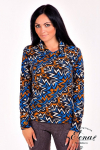 Рубашка из ткани "джинса" в мелкую полоску. С коротким втачным рукавом и ассиметричной застёжкой на пуговицы спереди.